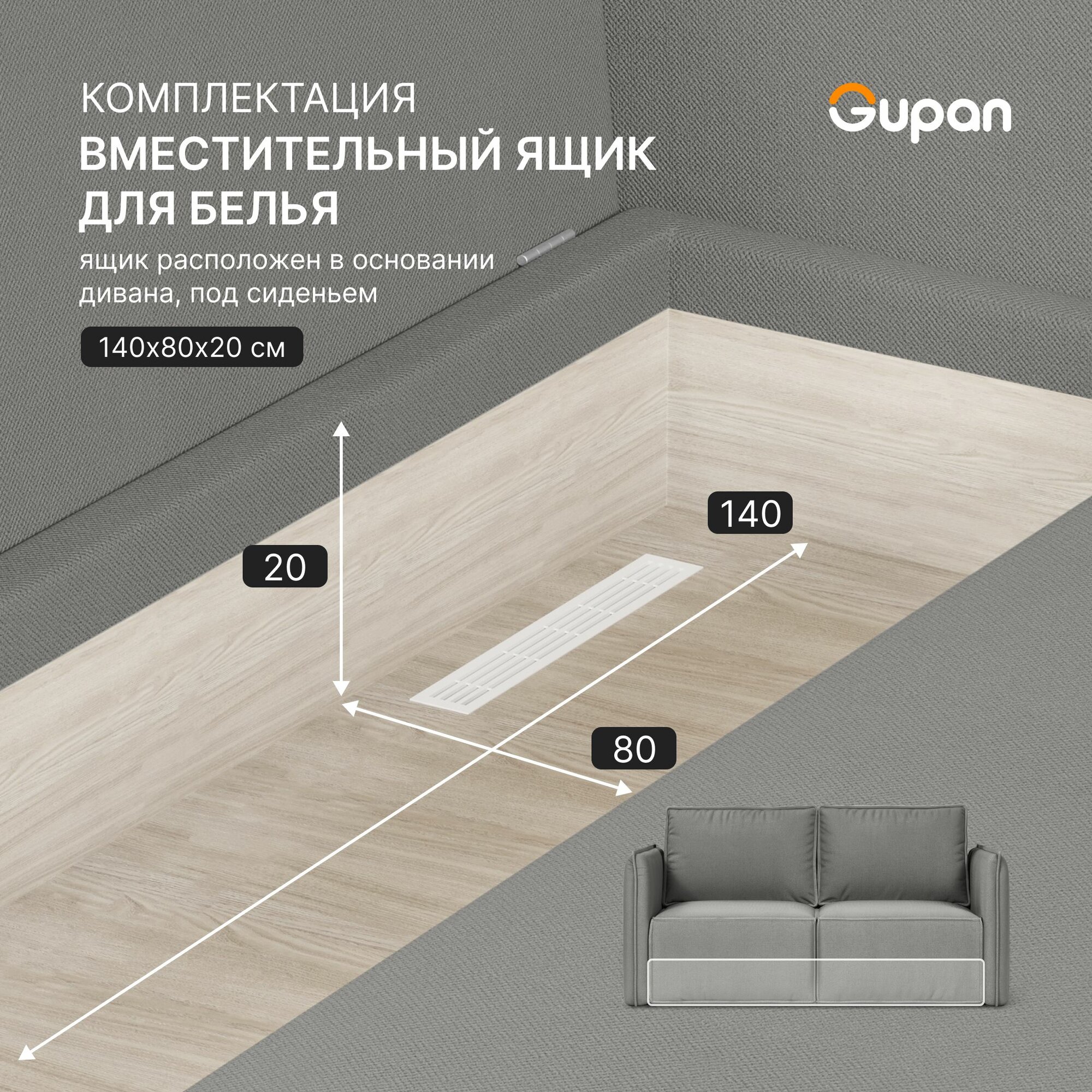 Диван кровать Gupan Кафф 1 / Смайл Велюр Amigo Ash, раскладной, механизм аккордеон, беспружинный, с ящиком для белья