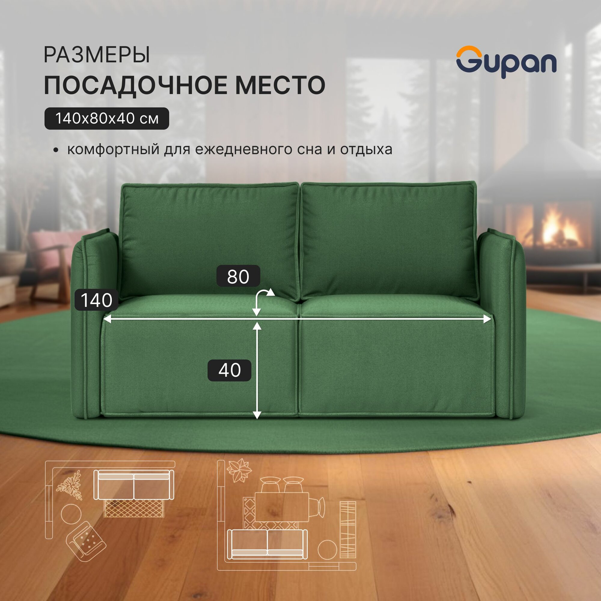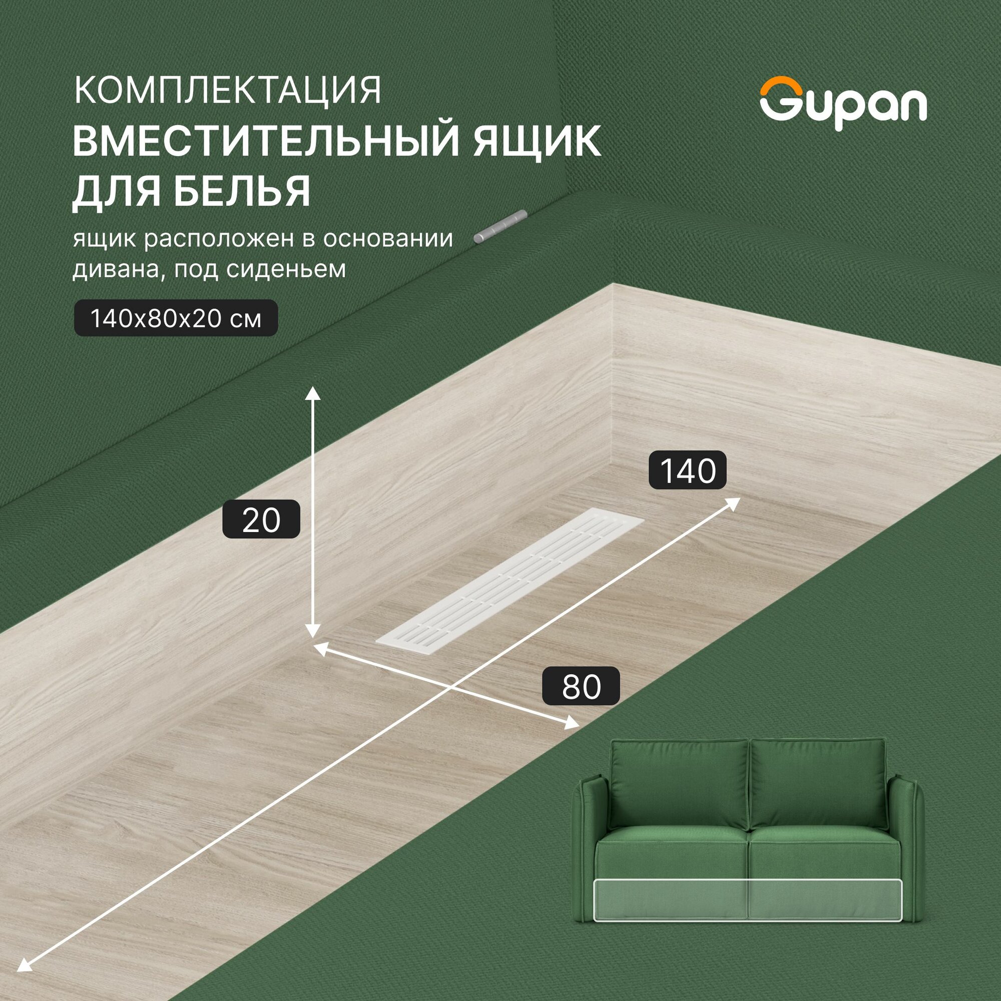 Диван кровать Gupan Кафф 1 / Смайл Рогожка Savana Green, раскладной, механизм аккордеон, беспружинный, с ящиком для белья