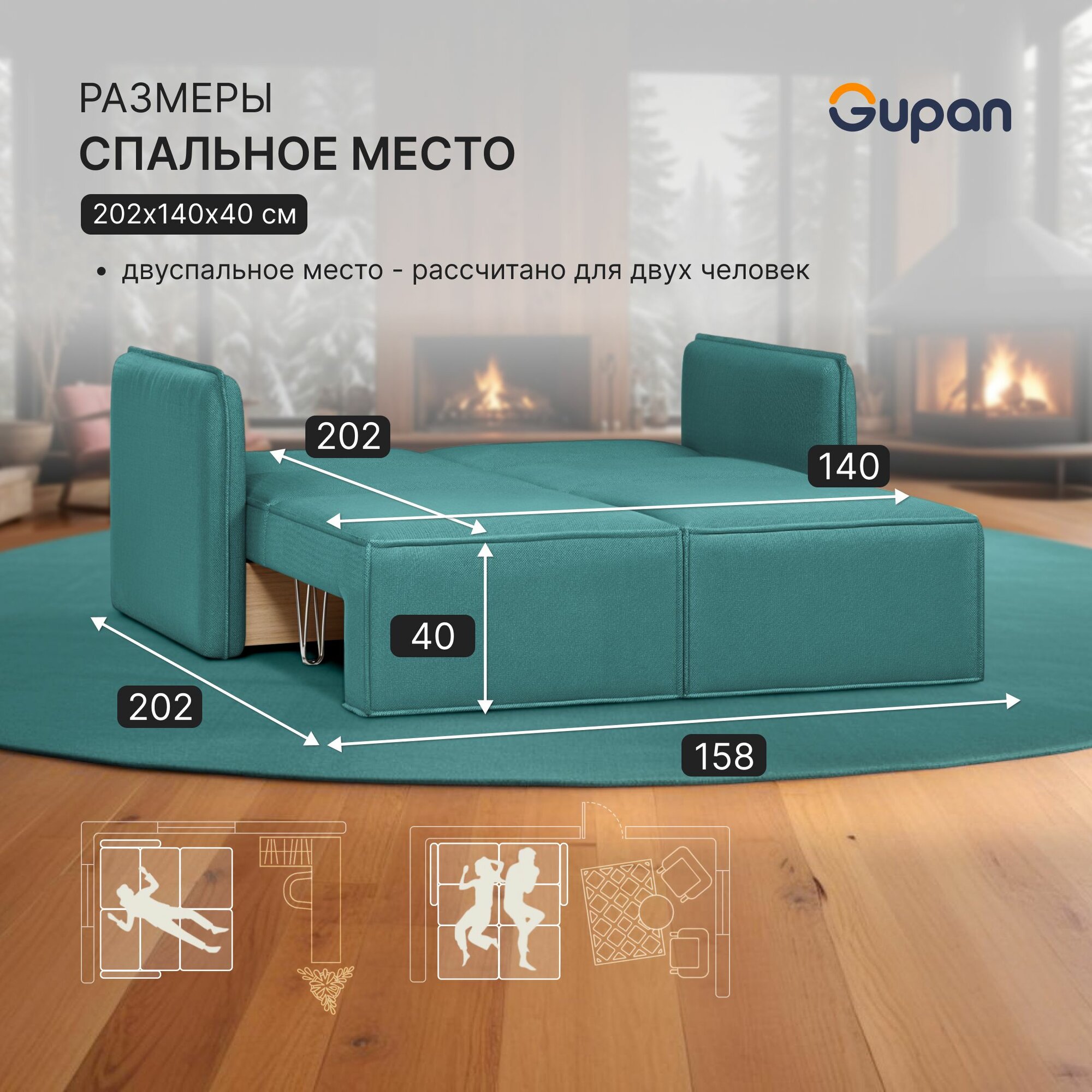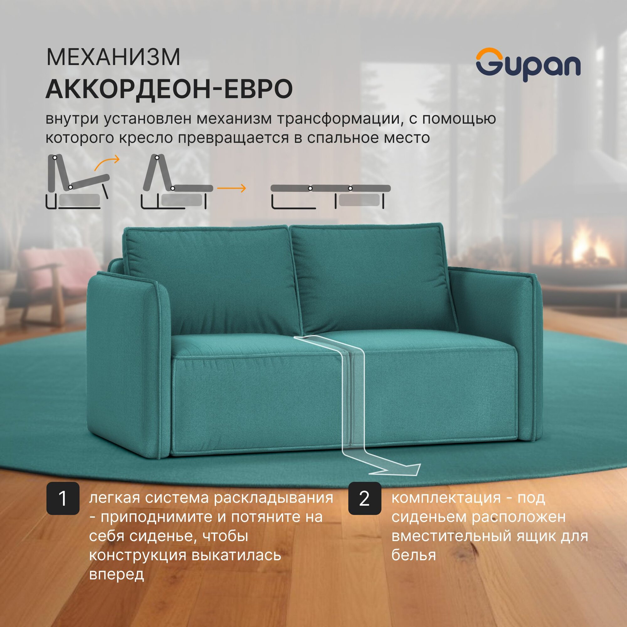 Диван кровать Gupan Кафф 1 / Смайл Рогожка Savana Lagoon, раскладной, механизм аккордеон, беспружинный, с ящиком для белья