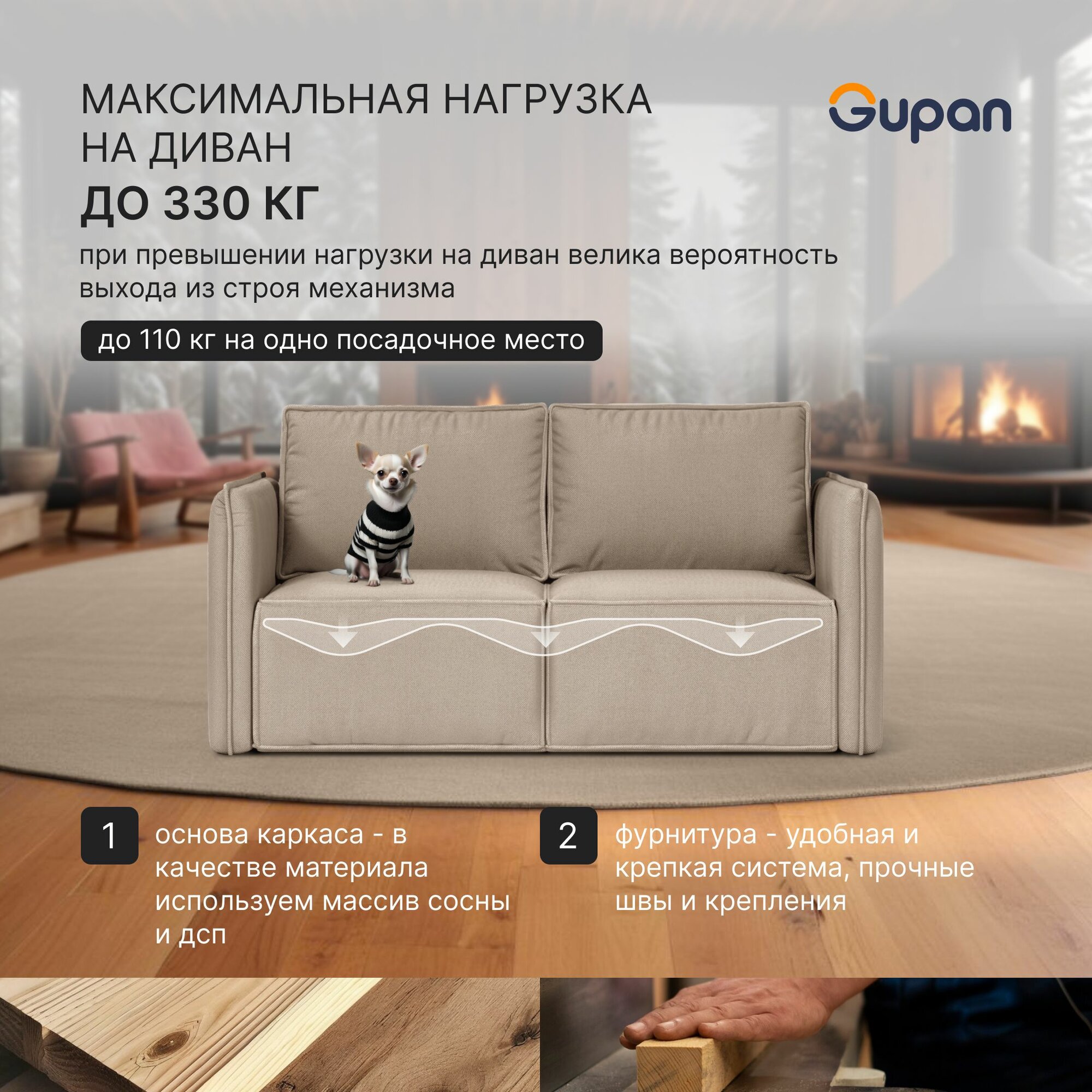 Диван кровать Gupan Кафф 1 / Смайл Рогожка Savana Latte, раскладной, механизм аккордеон, беспружинный, с ящиком для белья