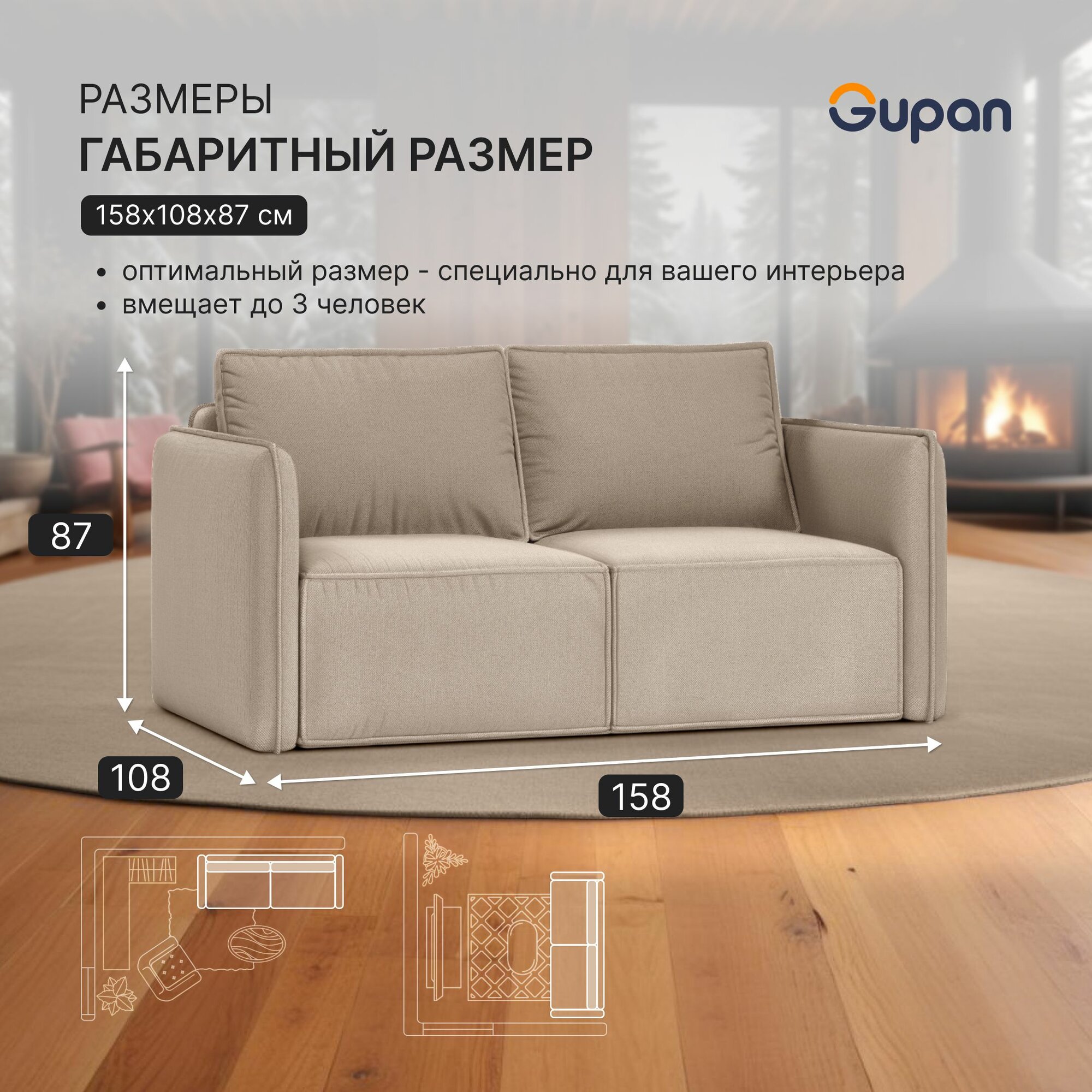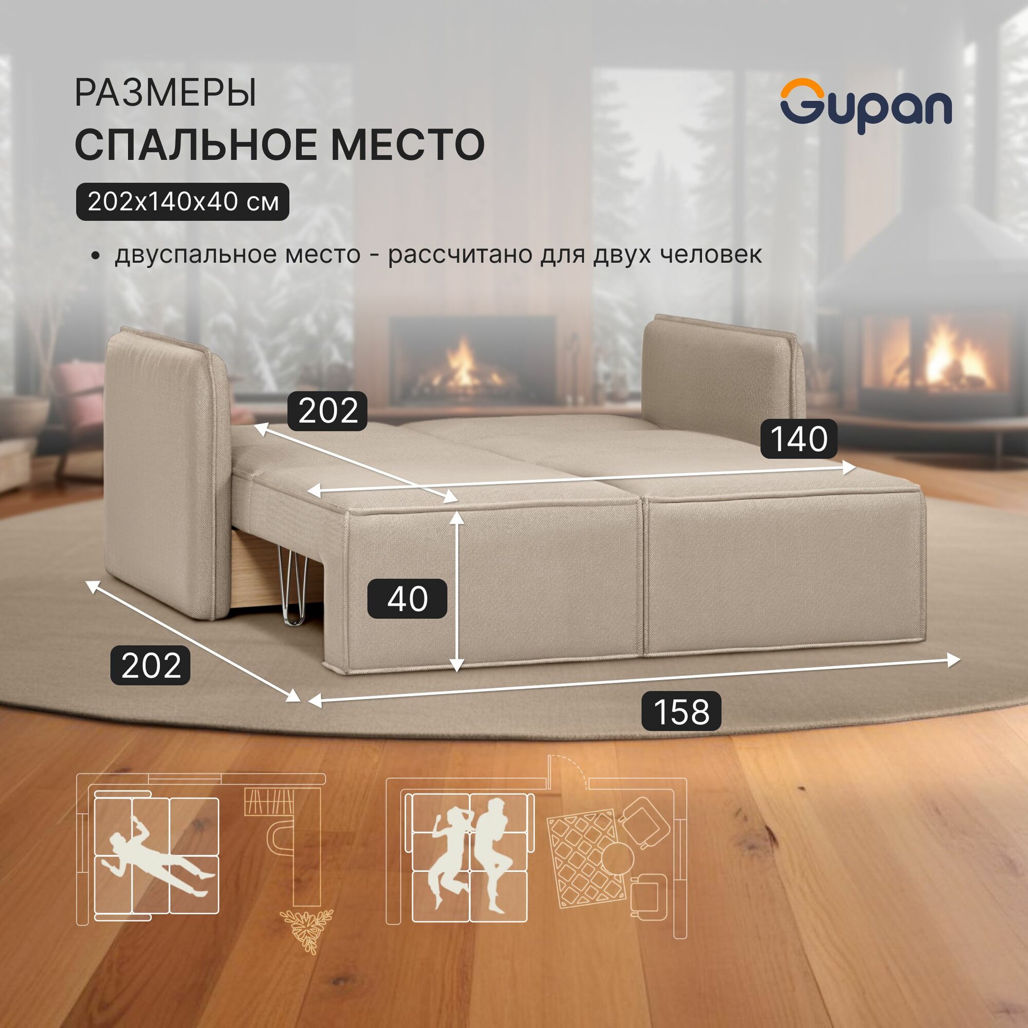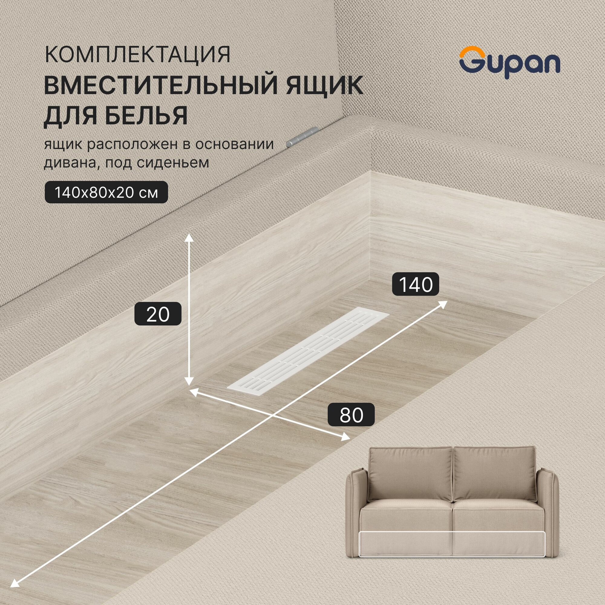 Диван кровать Gupan Кафф 1 / Смайл Рогожка Бежевая, раскладной, механизм аккордеон, беспружинный, с ящиком для белья
