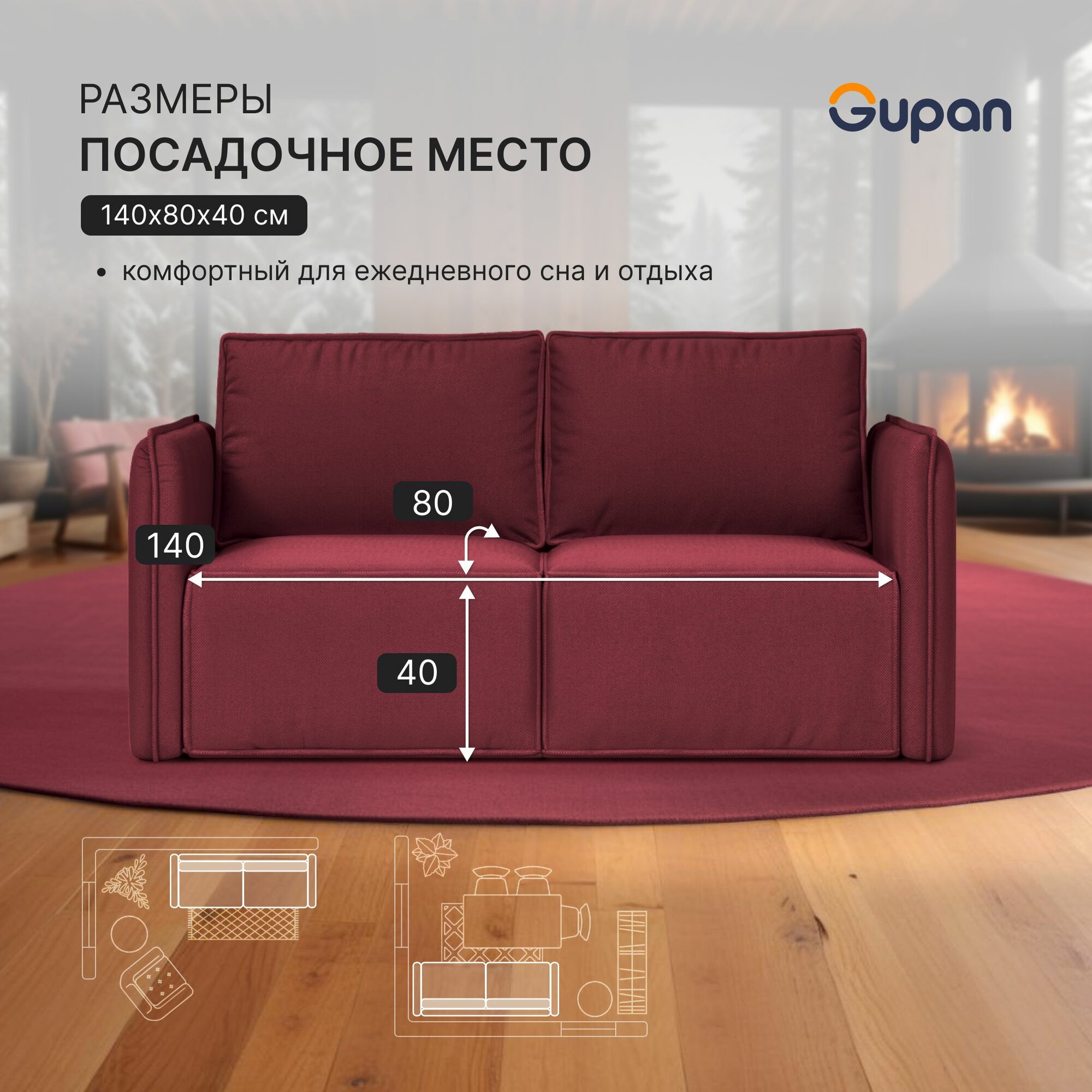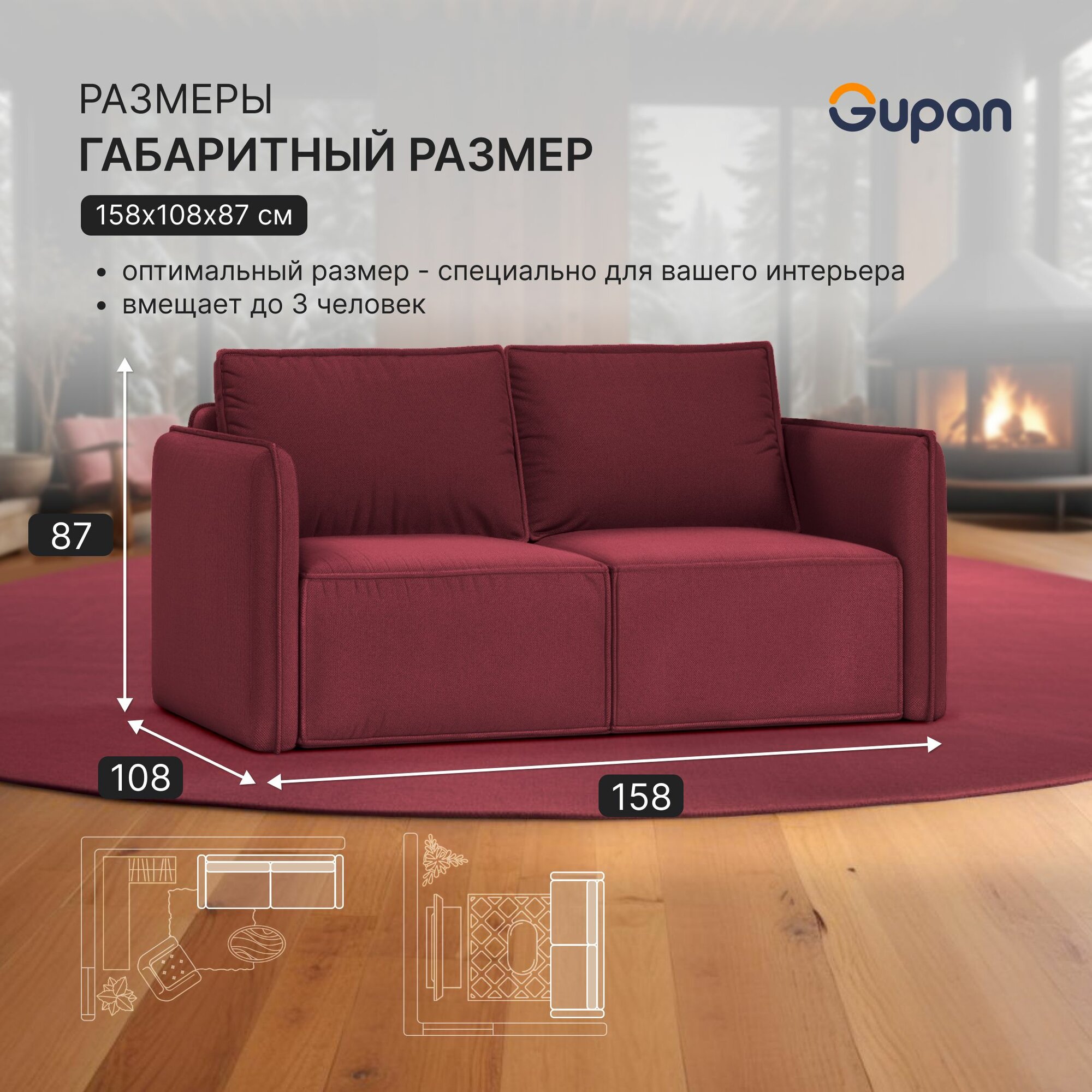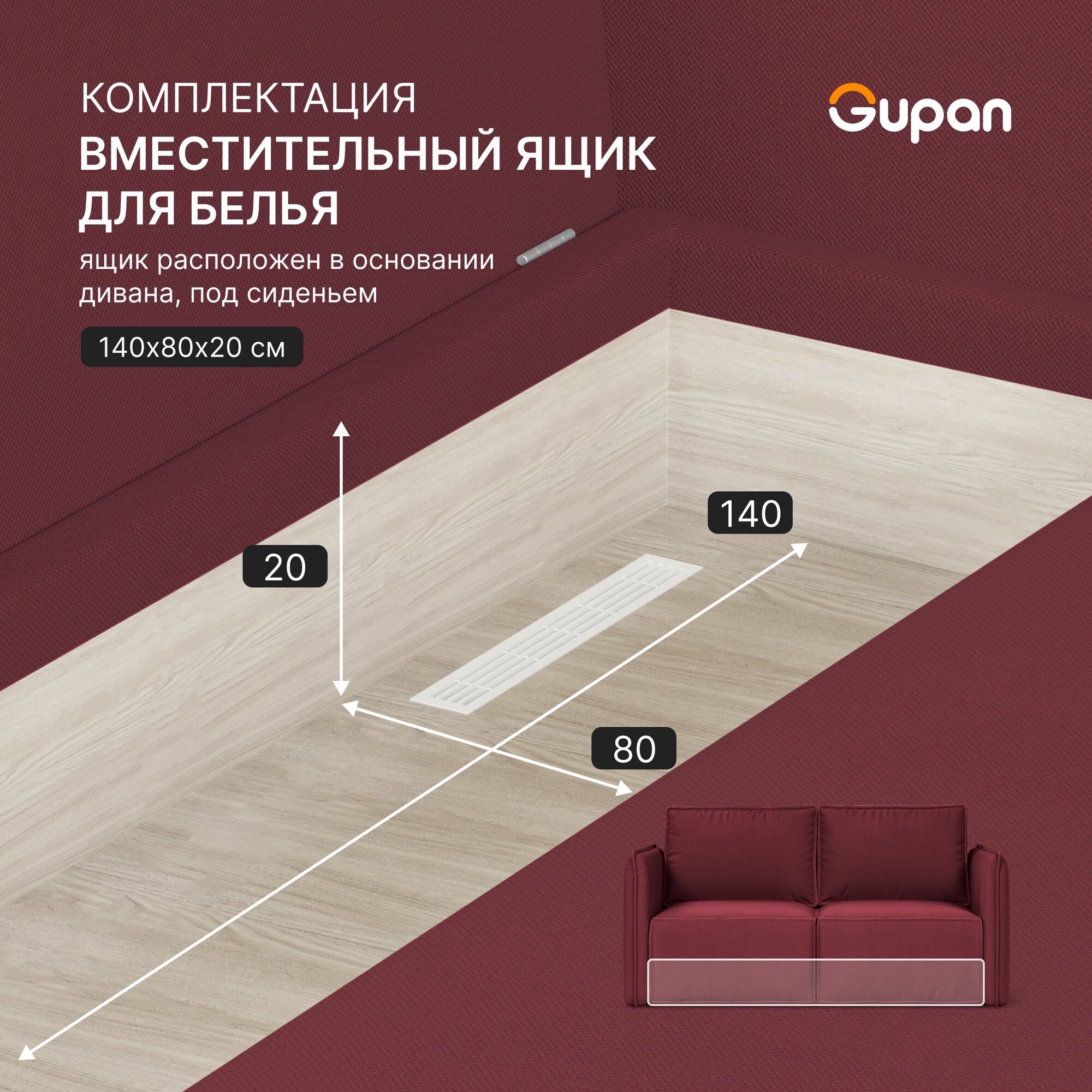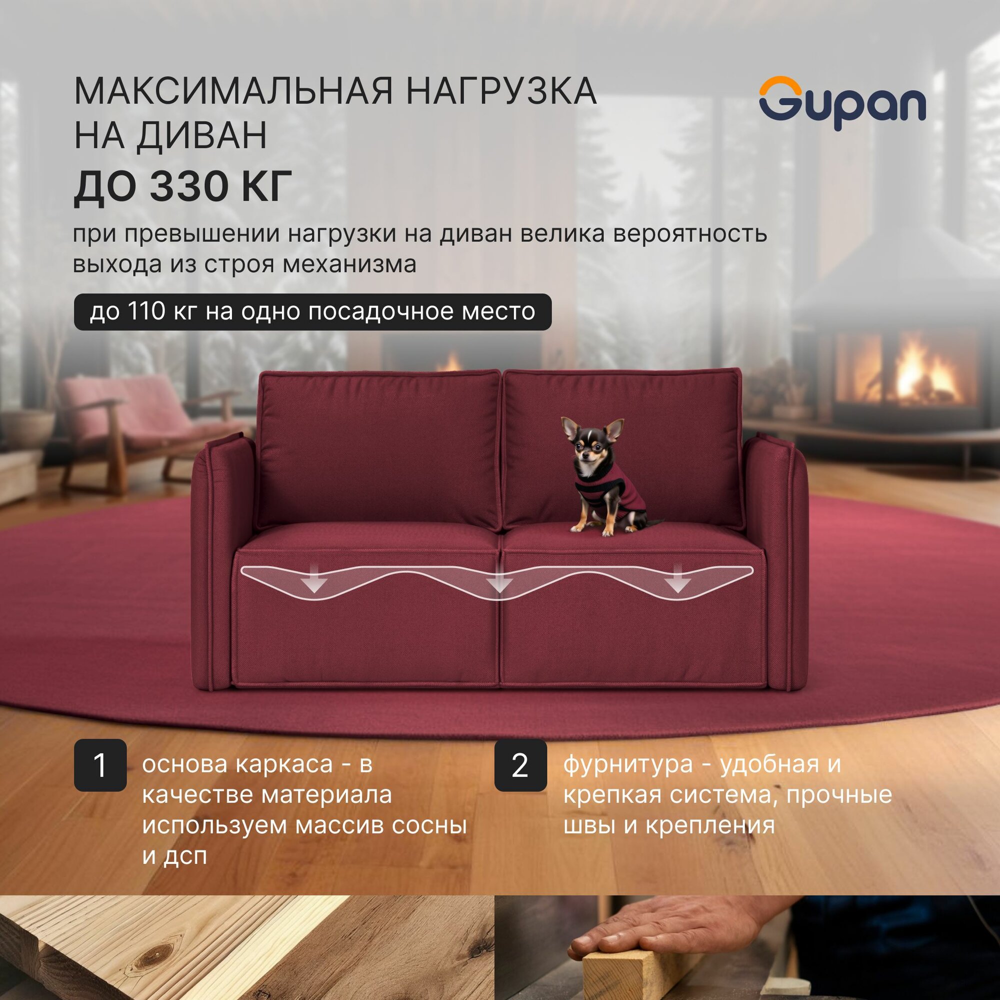 Диван кровать Gupan Кафф 1 / Смайл Рогожка Savana Berry, раскладной, механизм аккордеон, беспружинный, с ящиком для белья