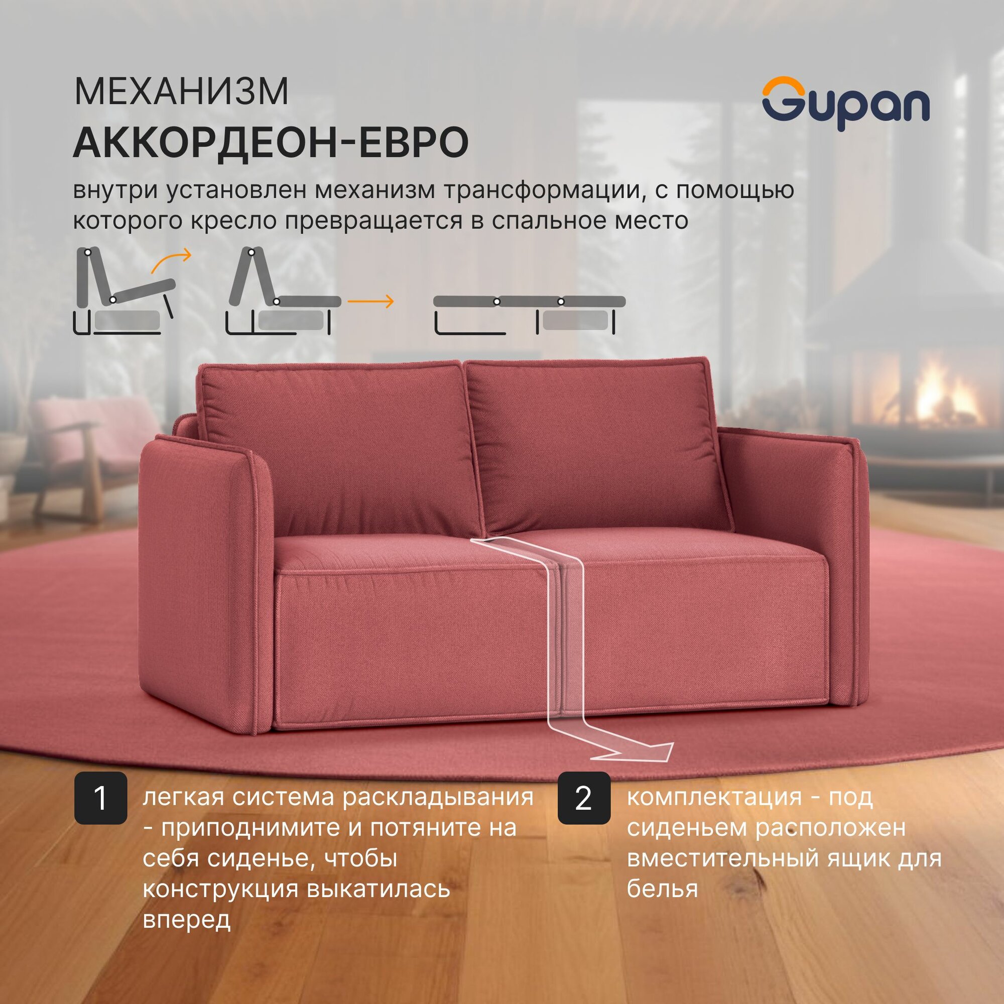 Диван кровать Gupan Кафф 1 / Смайл Рогожка Savana Dimrose, раскладной, механизм аккордеон, беспружинный, с ящиком для белья