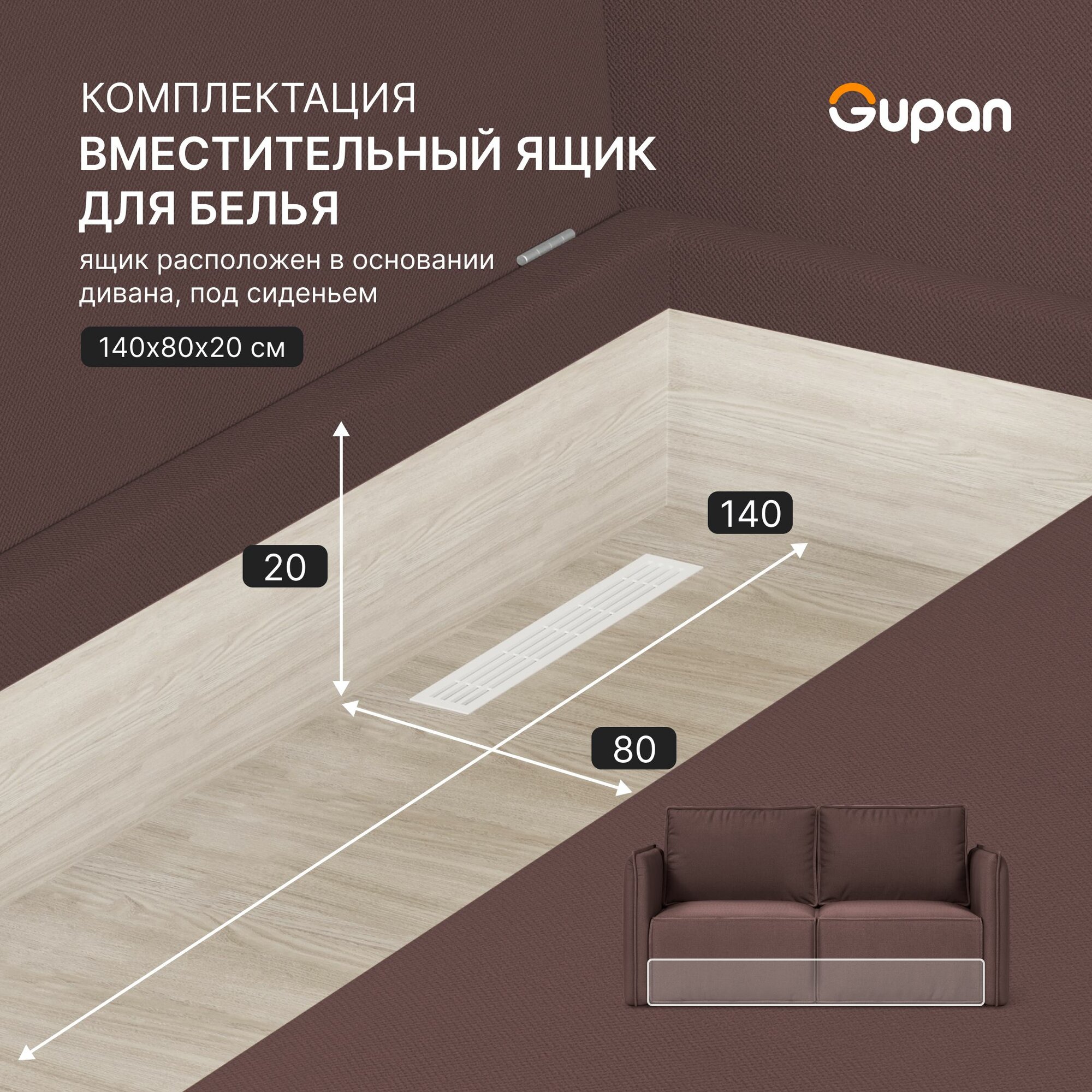 Диван кровать Gupan Кафф 1 / Смайл Велюр Amigo Brown, раскладной, механизм аккордеон, беспружинный, с ящиком для белья
