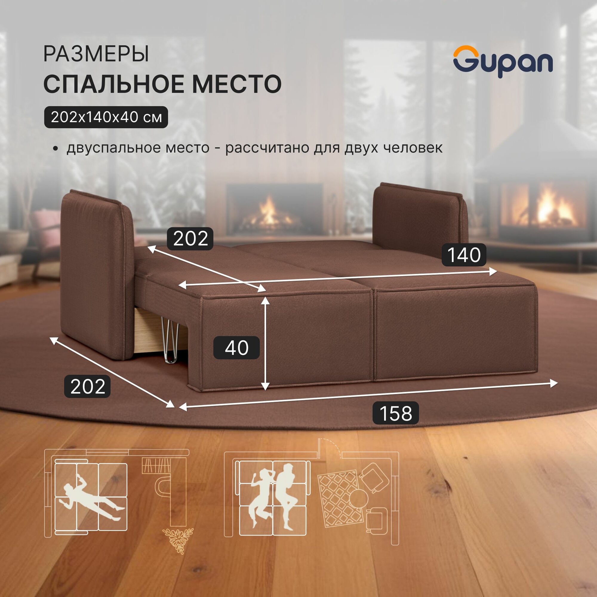 Диван кровать Gupan Кафф 1 / Смайл Рогожка Savana Chocolate, раскладной, механизм аккордеон, беспружинный, с ящиком для белья