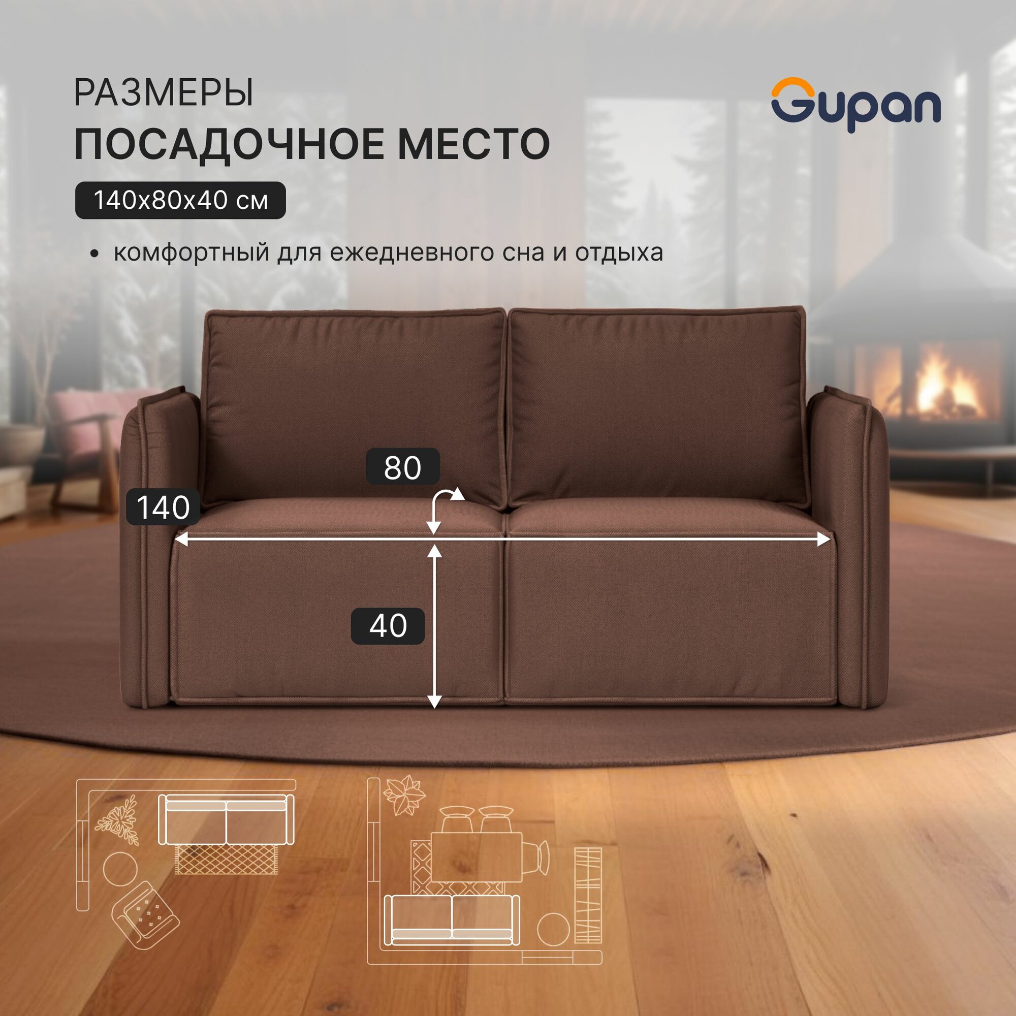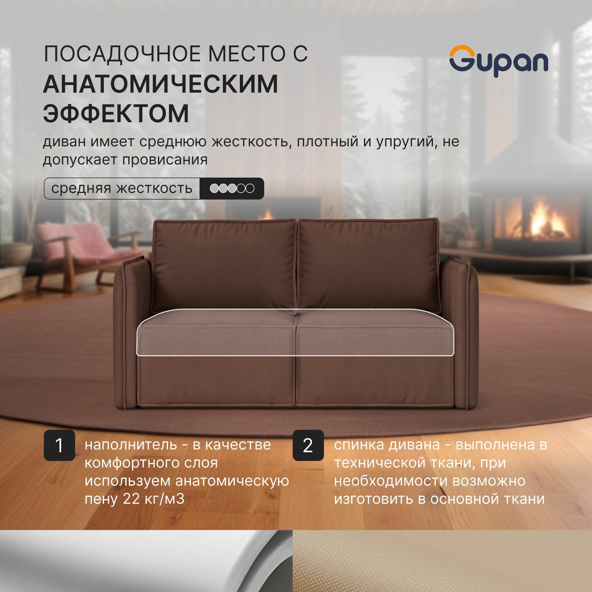 Диван кровать Gupan Кафф 1 / Смайл Рогожка Savana Toffee, раскладной, механизм аккордеон, беспружинный, с ящиком для белья