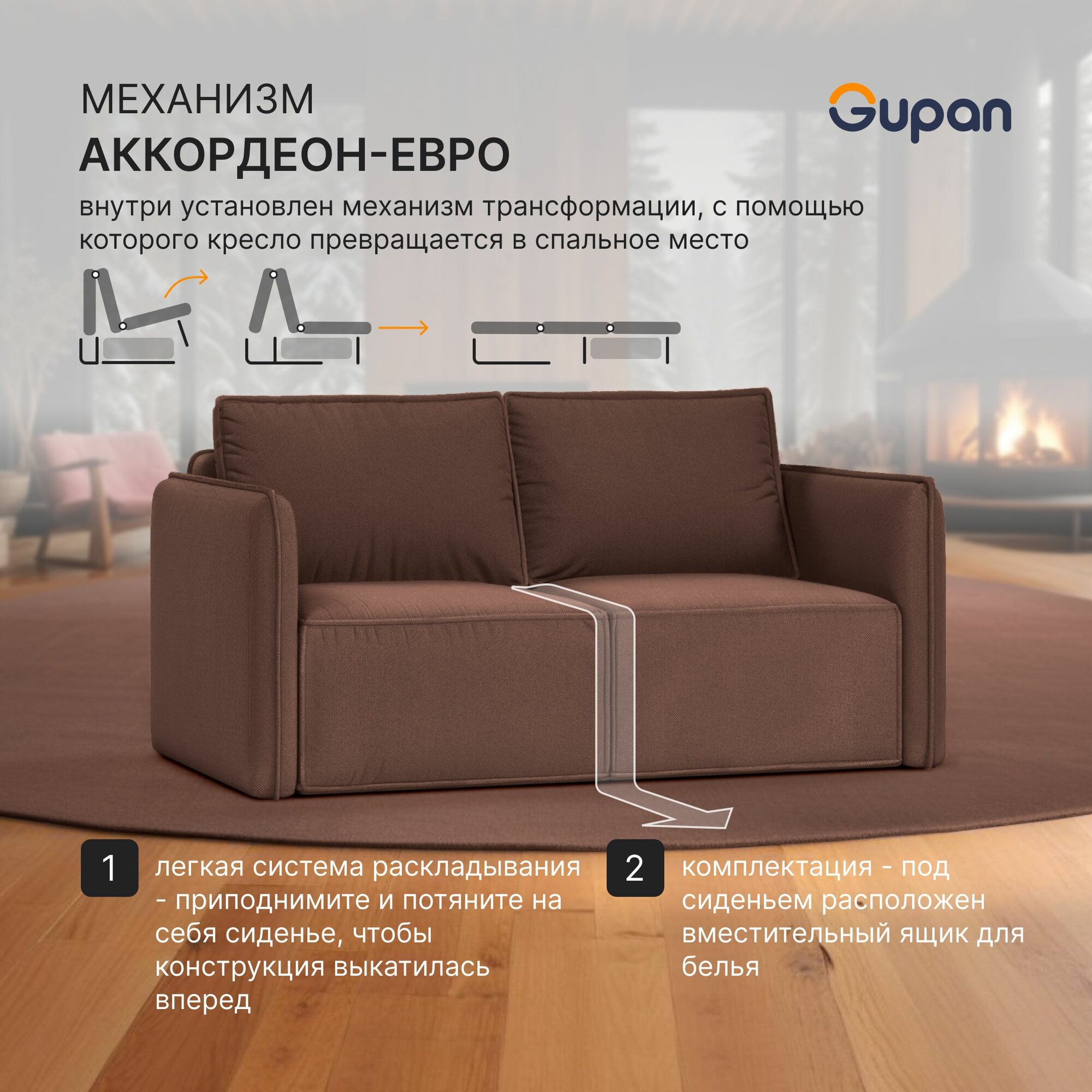 Диван кровать Gupan Кафф 1 / Смайл Велюр Amigo Cocoa, раскладной, механизм аккордеон, беспружинный, с ящиком для белья