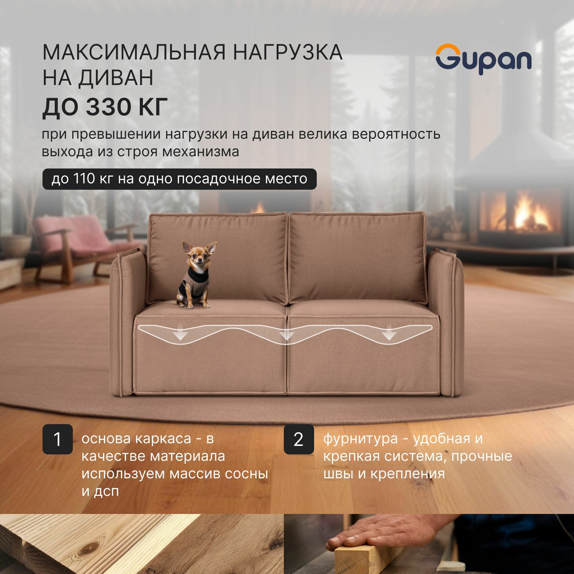 Диван кровать Gupan Кафф 1 / Смайл Рогожка Savana Toffee, раскладной, механизм аккордеон, беспружинный, с ящиком для белья