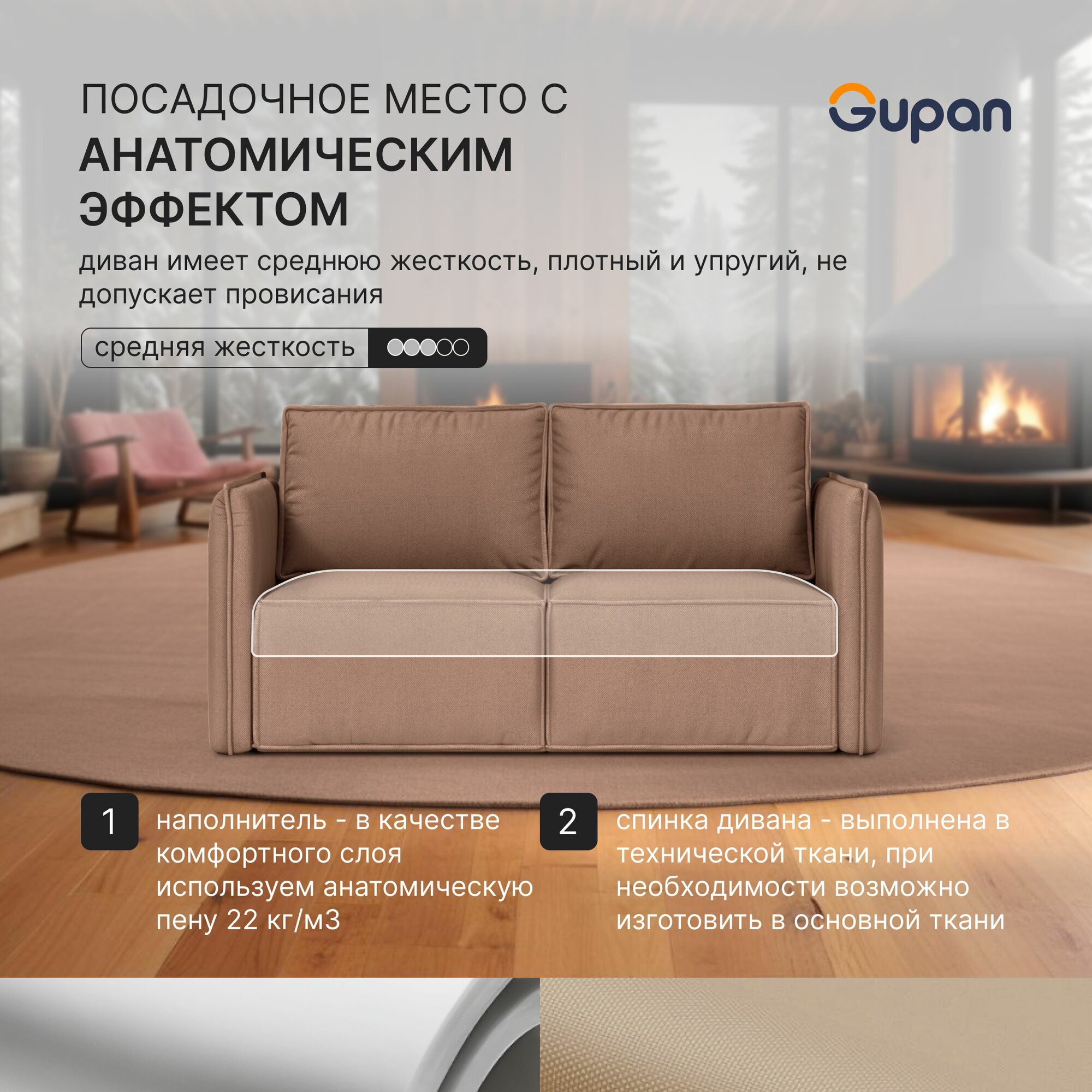 Диван кровать Gupan Кафф 1 / Смайл Рогожка Savana Latte, раскладной, механизм аккордеон, беспружинный, с ящиком для белья