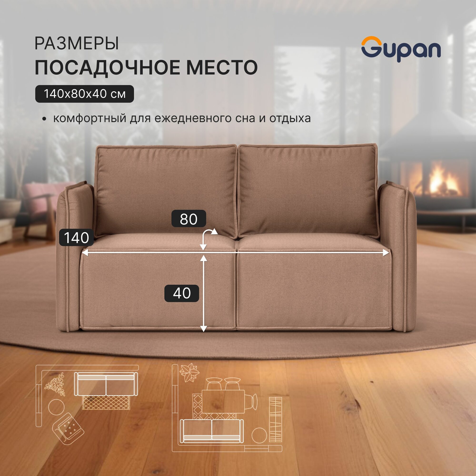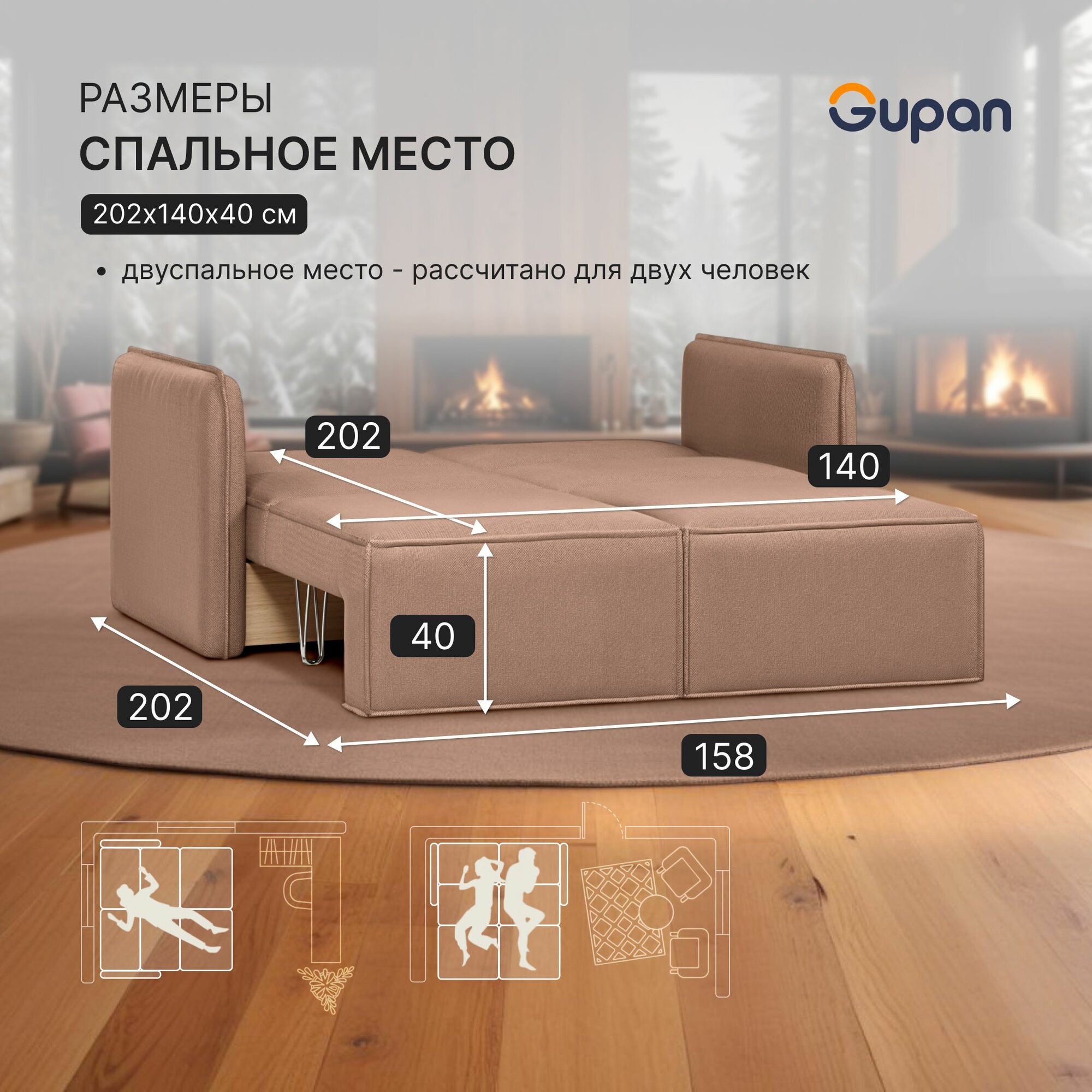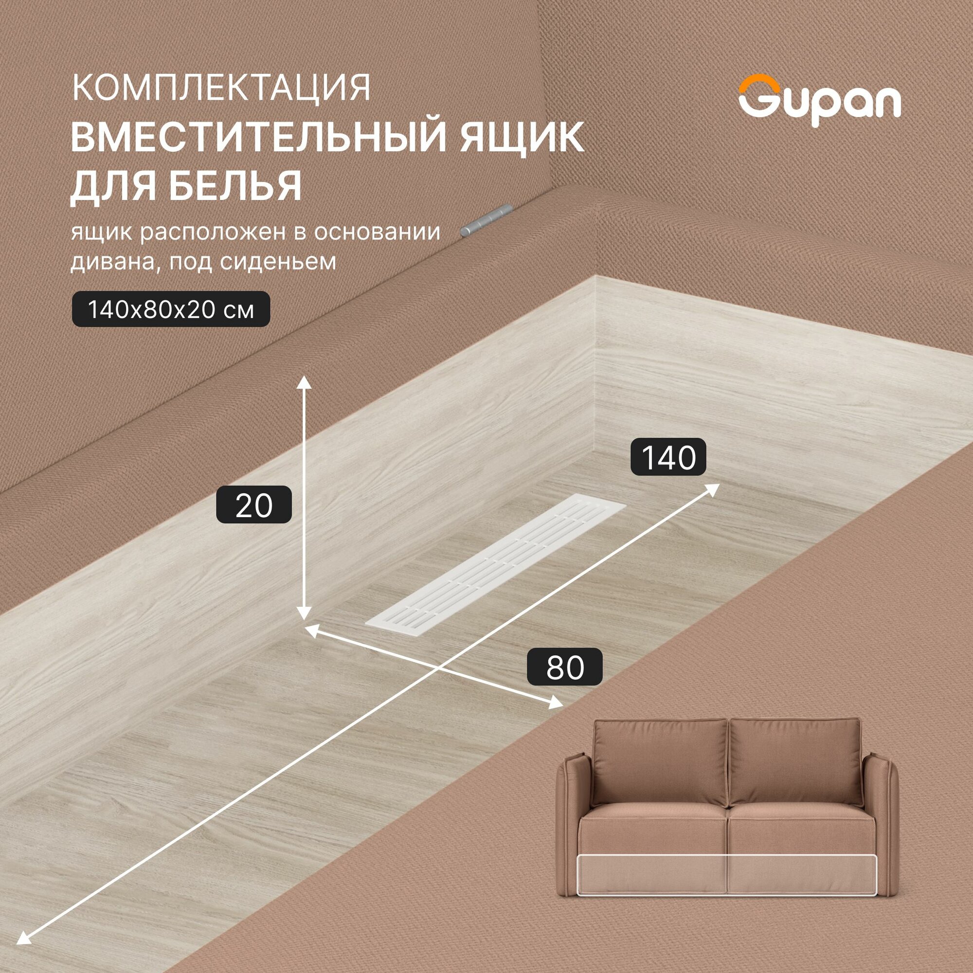 Диван кровать Gupan Кафф 1 / Смайл Рогожка Бежевая, раскладной, механизм аккордеон, беспружинный, с ящиком для белья