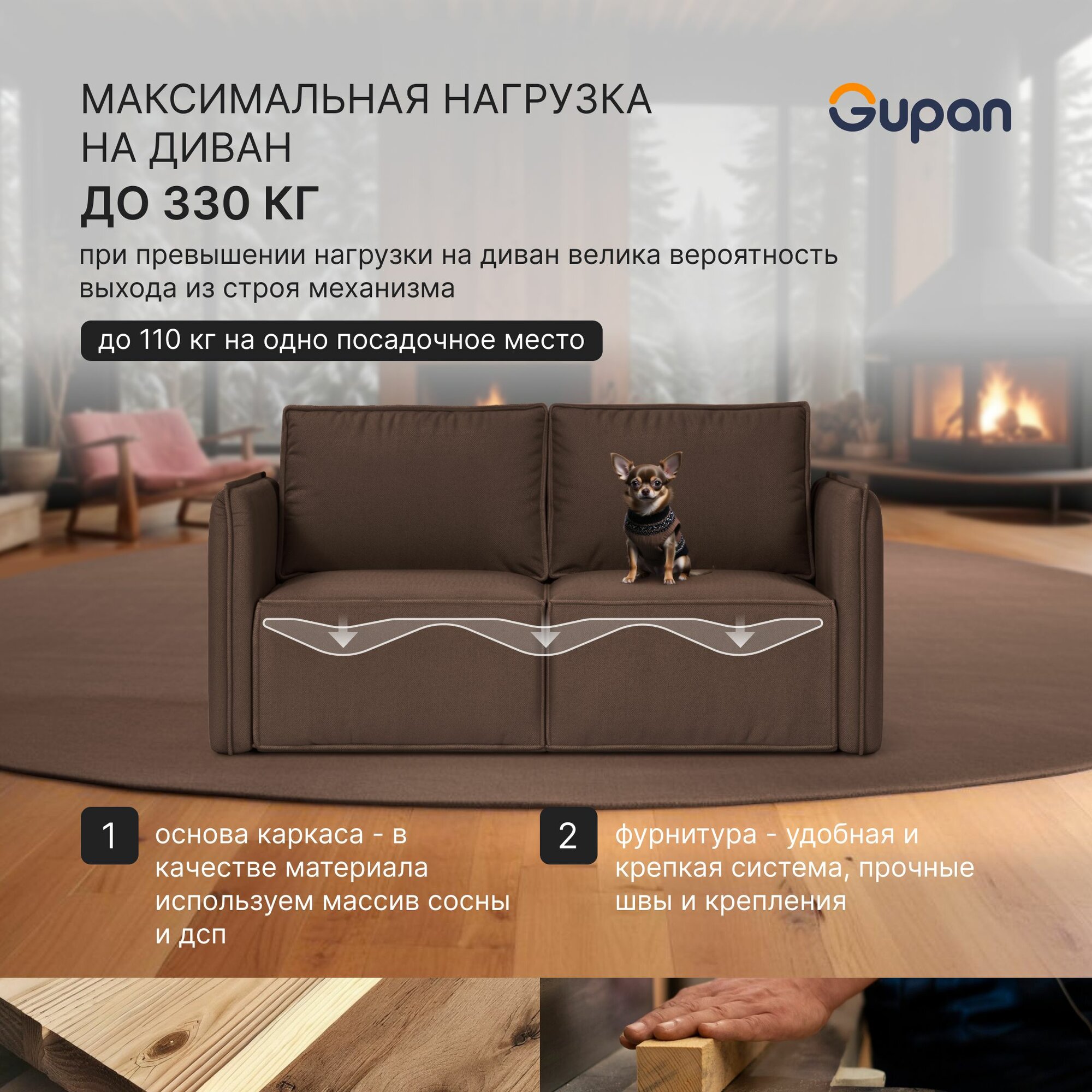 Диван кровать Gupan Кафф 1 / Смайл Велюр Amigo Brown, раскладной, механизм аккордеон, беспружинный, с ящиком для белья