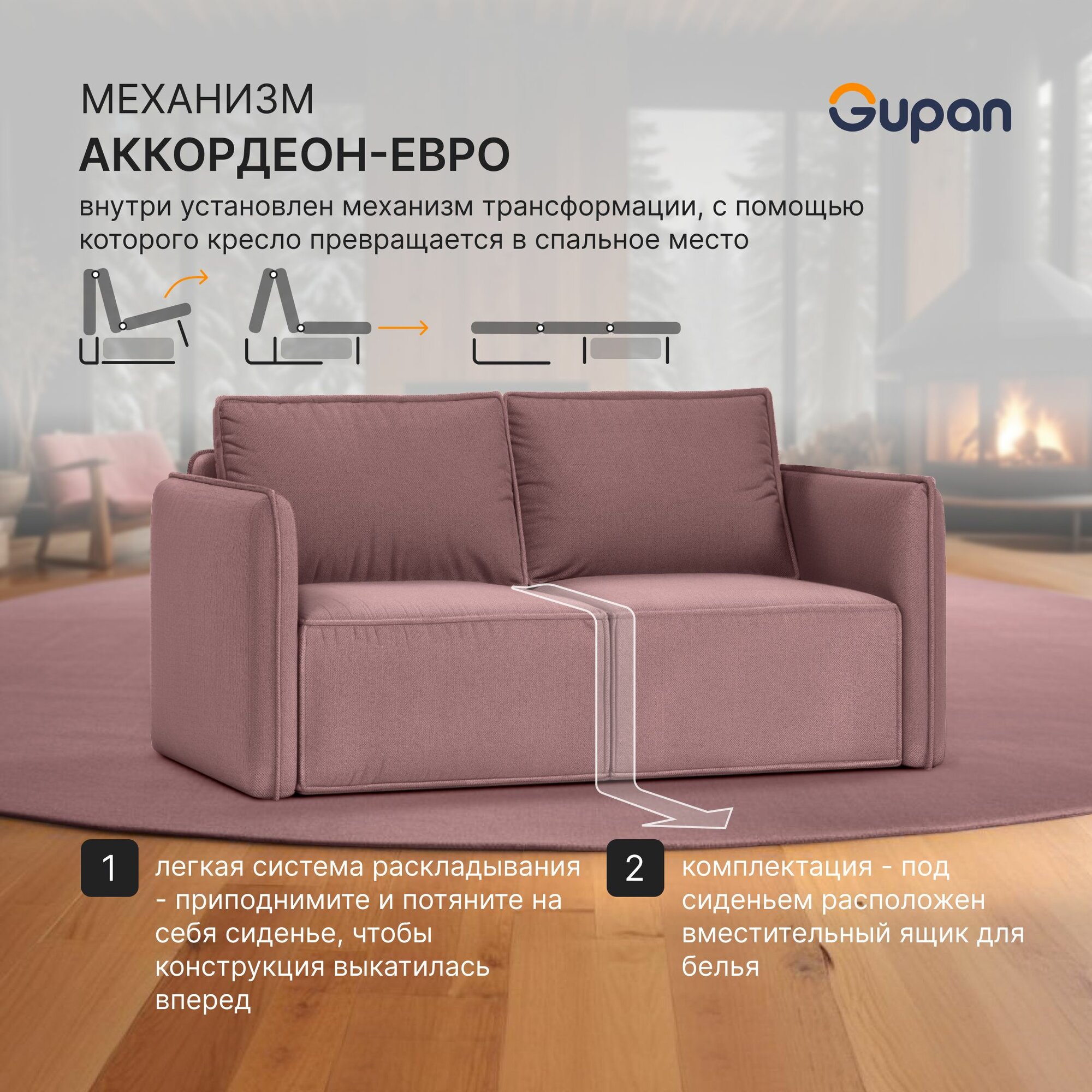 Диван кровать Gupan Кафф 1 / Смайл Рогожка Savana Dimrose, раскладной, механизм аккордеон, беспружинный, с ящиком для белья