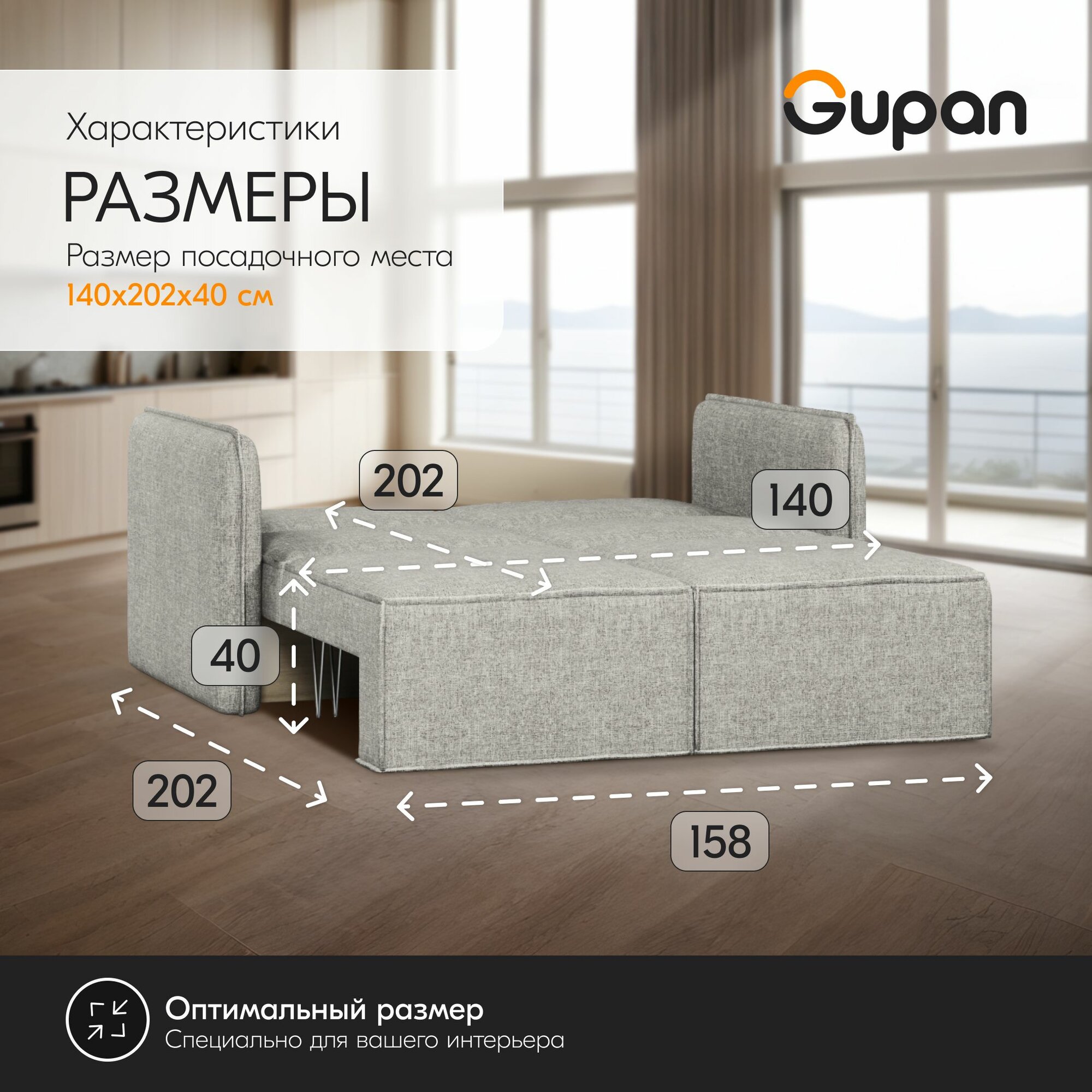 Диван кровать Gupan Кафф 1 / Смайл Рогожка Бежевая, раскладной, механизм аккордеон, беспружинный, с ящиком для белья