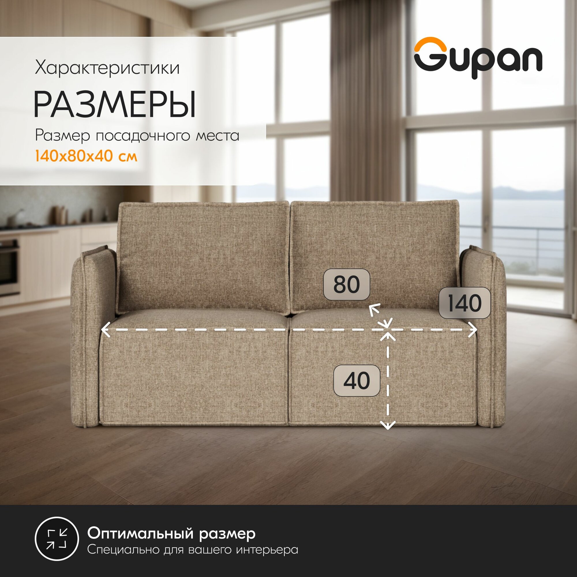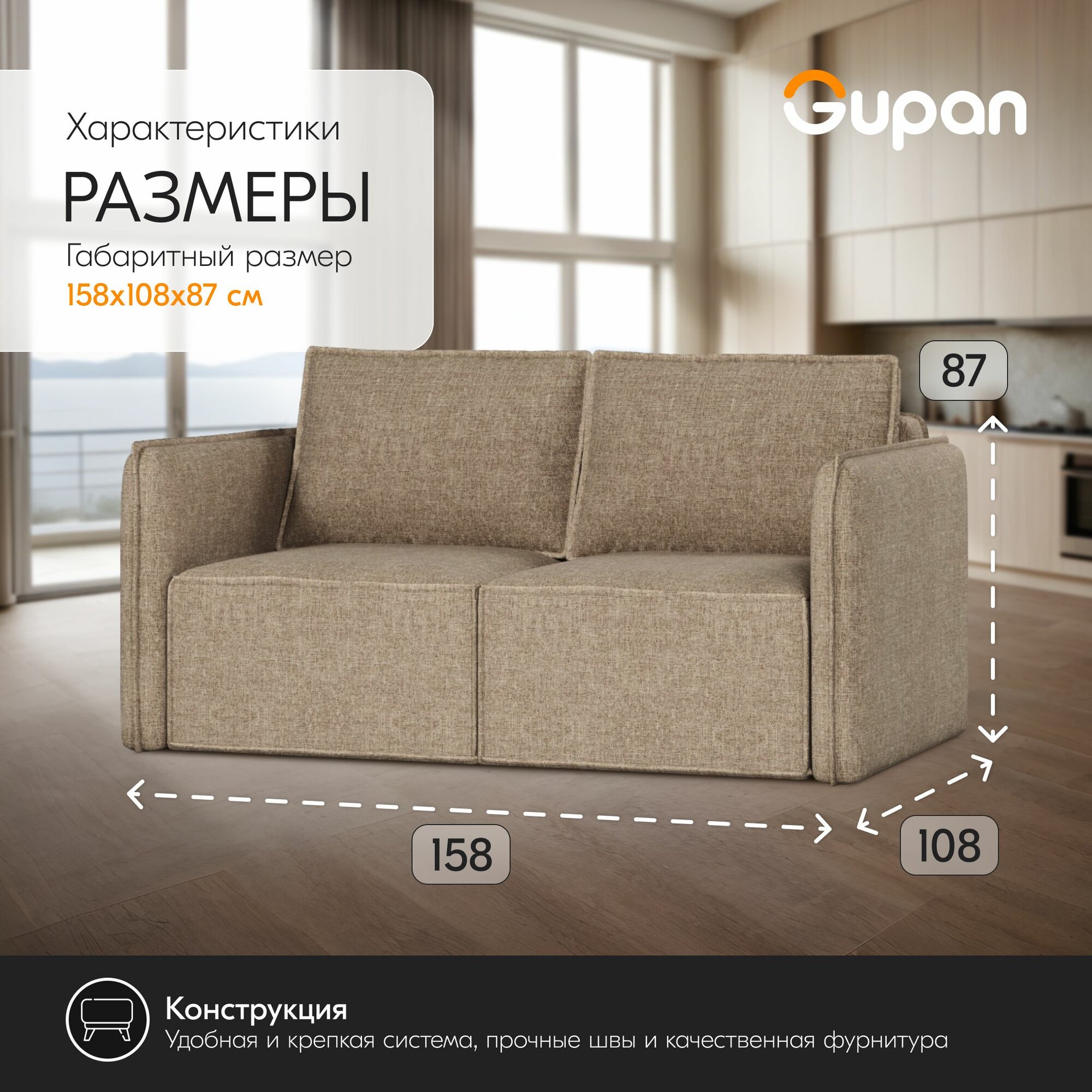 Диван кровать Gupan Кафф 1 / Смайл Рогожка Бежевая, раскладной, механизм аккордеон, беспружинный, с ящиком для белья