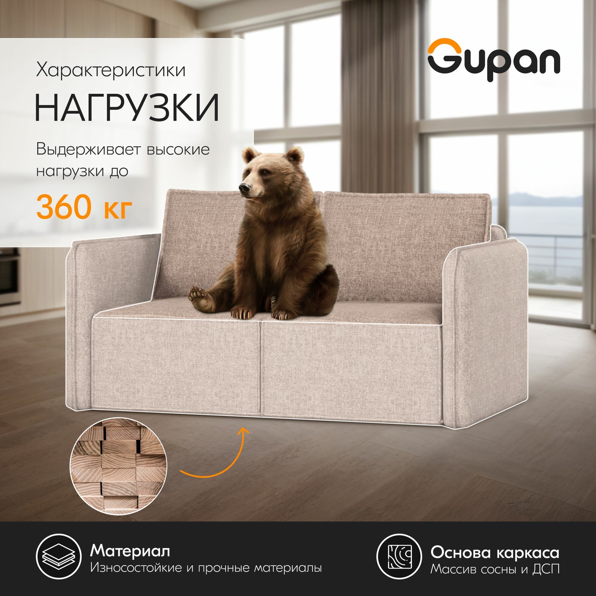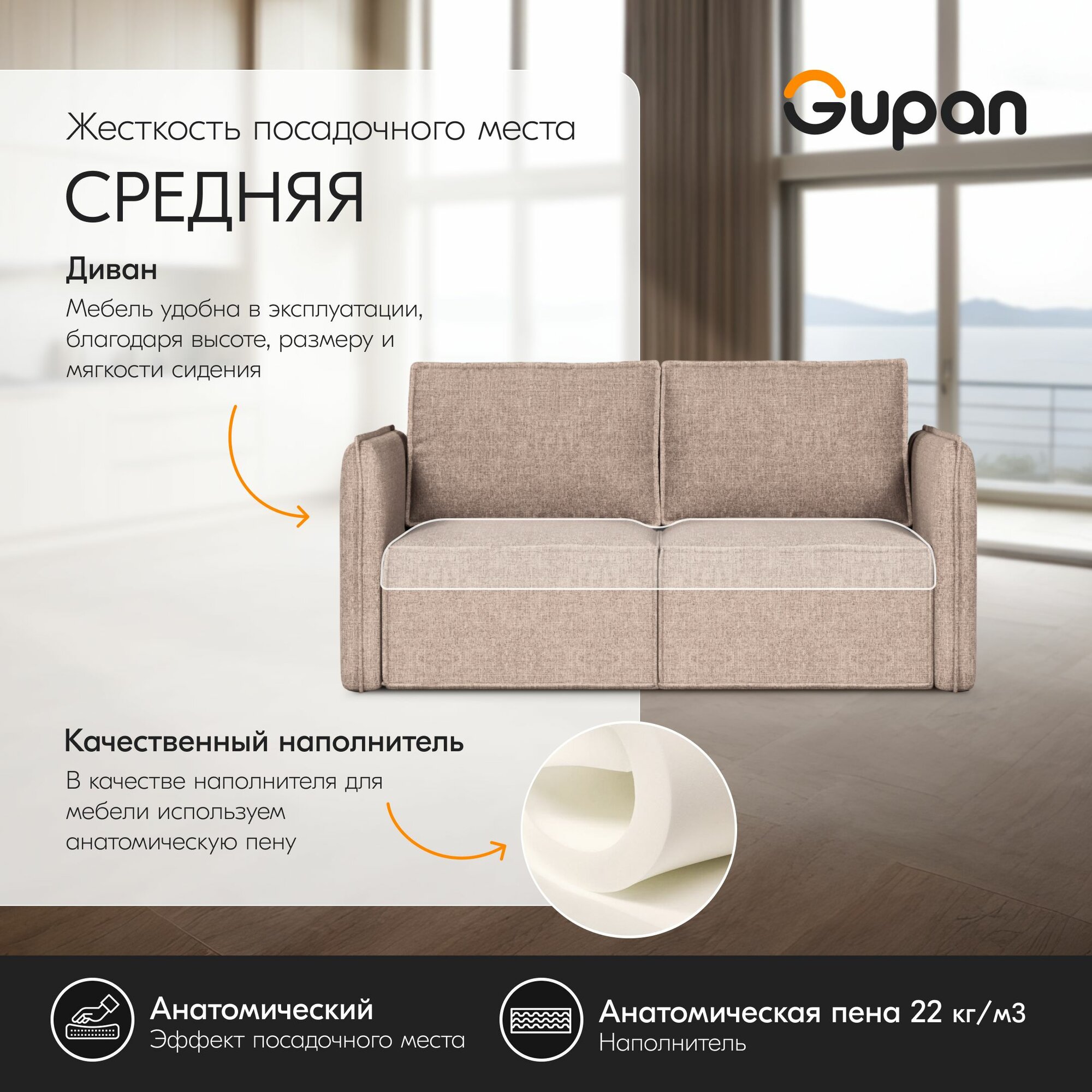 Диван кровать Gupan Кафф 1 / Смайл Рогожка Бежевая, раскладной, механизм аккордеон, беспружинный, с ящиком для белья