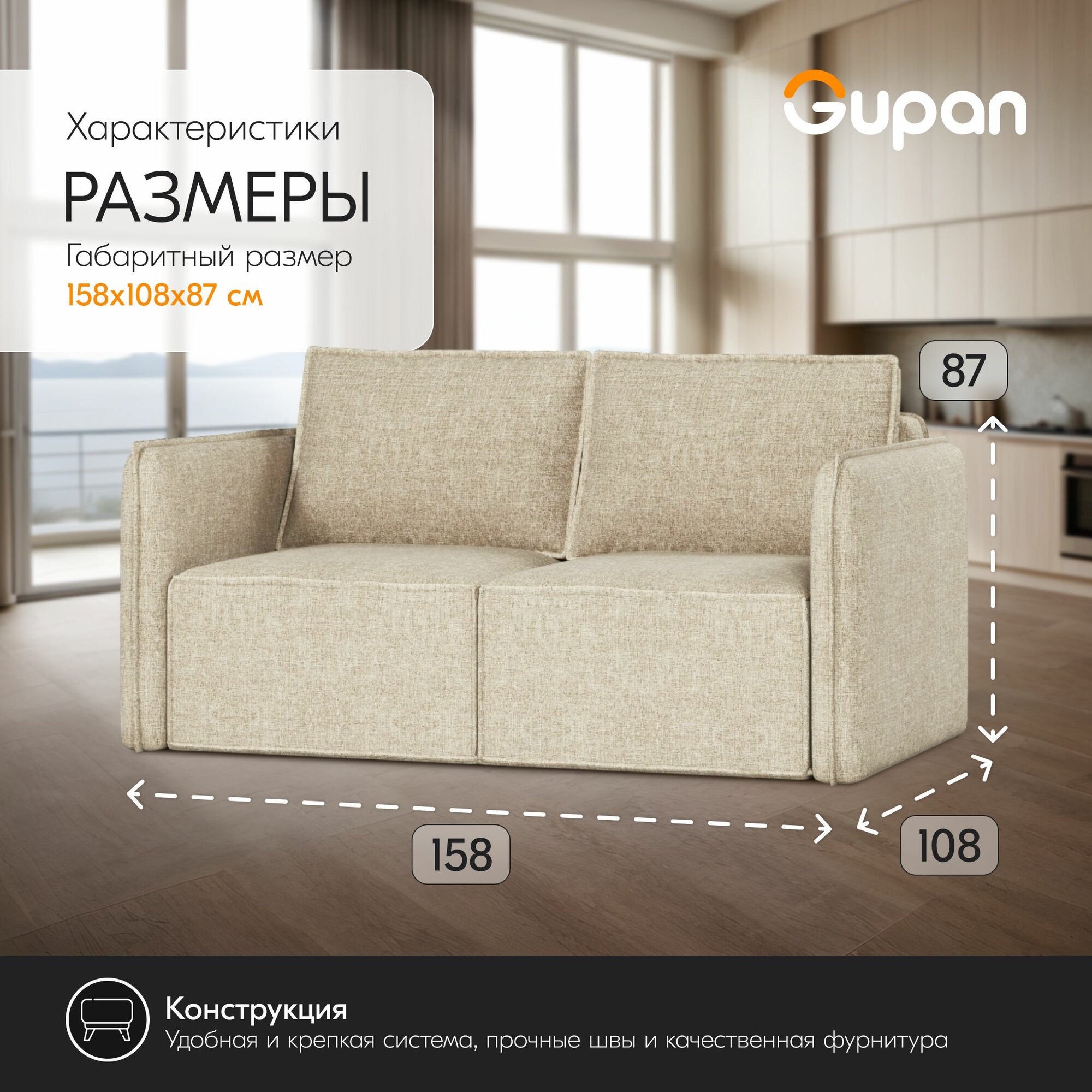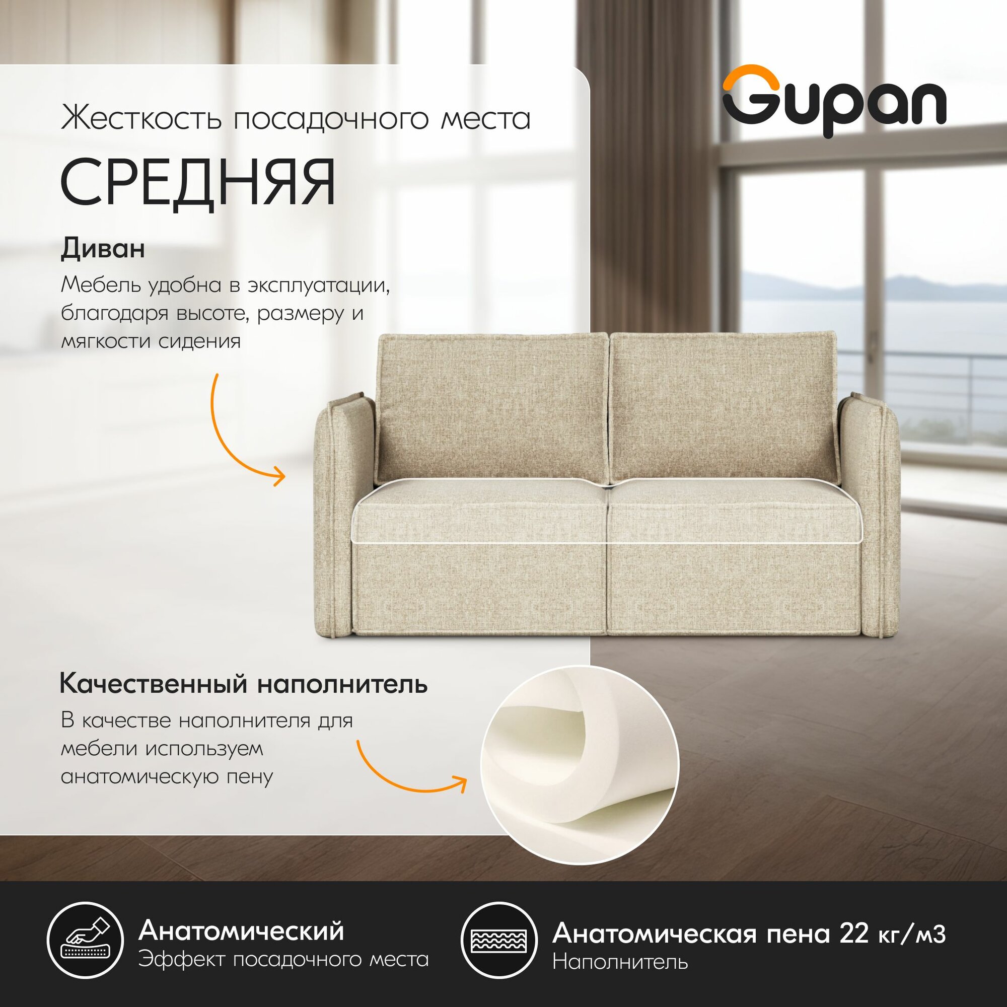 Купить Диван кровать Gupan Кафф 1 / Смайл Рогожка Бежевая, раскладной, механизм аккордеон, беспружинный, с ящиком для белья