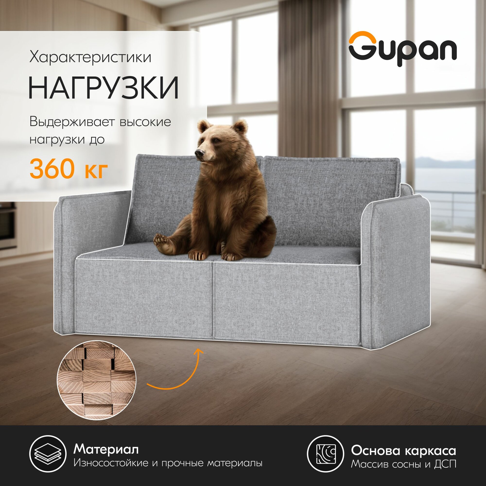 Купить Диван кровать Gupan Кафф 1 / Смайл Рогожка Savana Mouse, раскладной, механизм аккордеон, беспружинный, с ящиком для белья