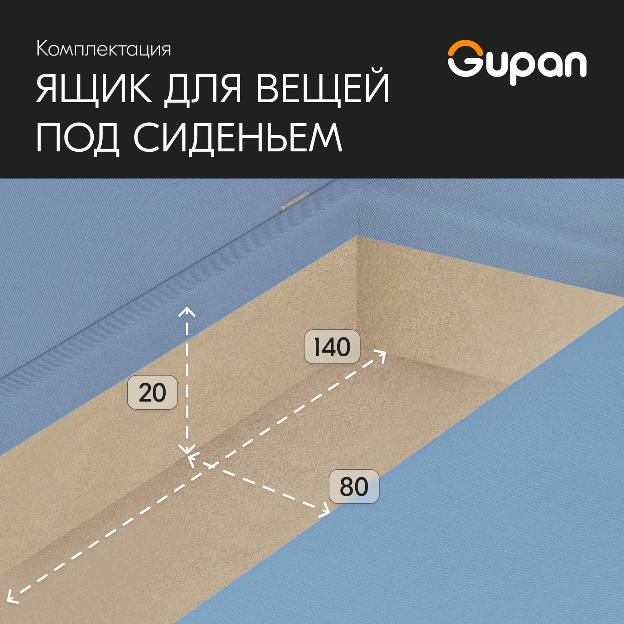 Диван кровать Gupan Кафф 1 / Смайл Велюр Amigo Blue, раскладной, механизм аккордеон, беспружинный, с ящиком для белья