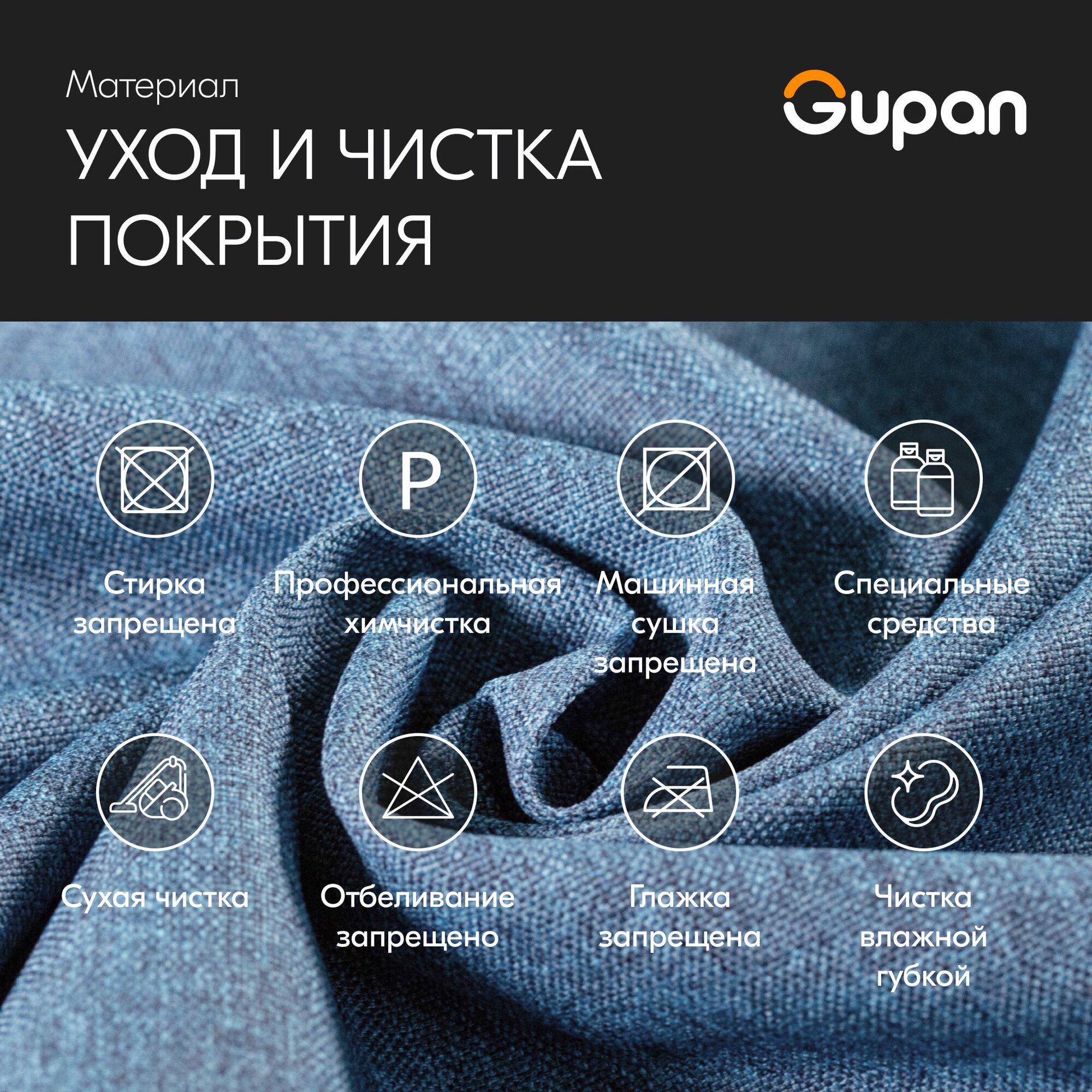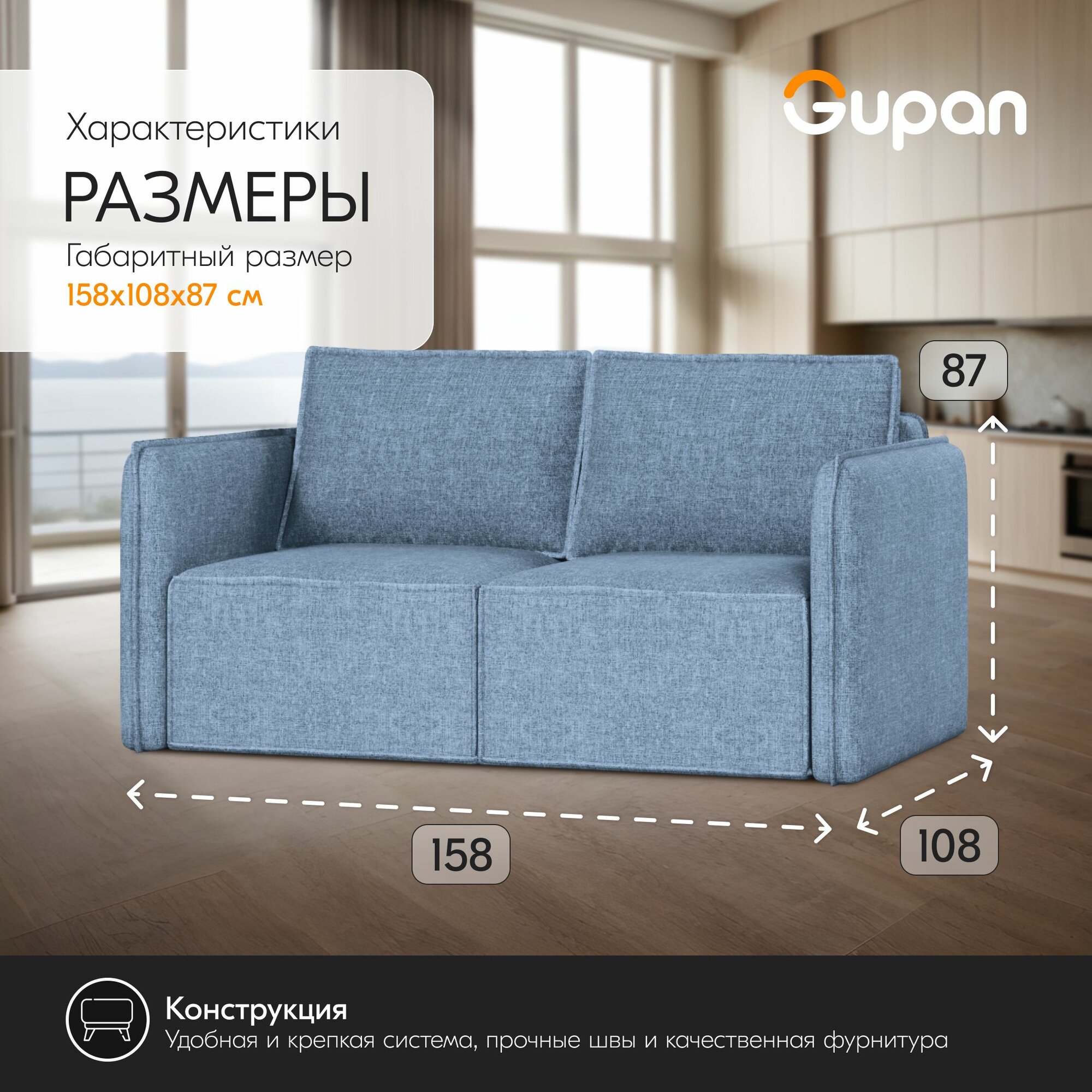 Диван кровать Gupan Кафф 1 / Смайл Рогожка Savana Denim, раскладной, механизм аккордеон, беспружинный, с ящиком для белья