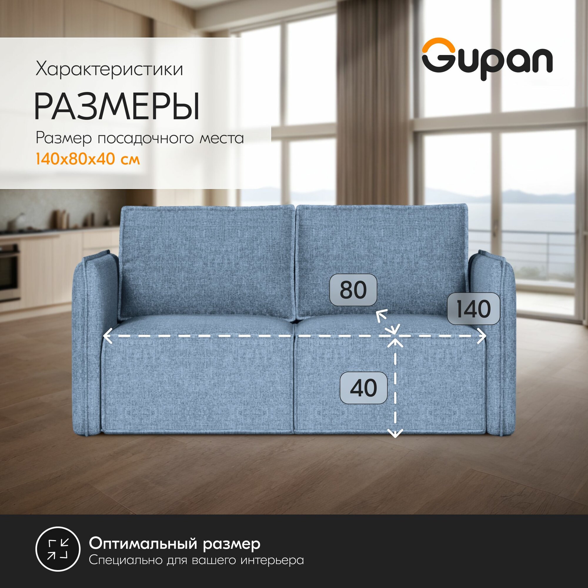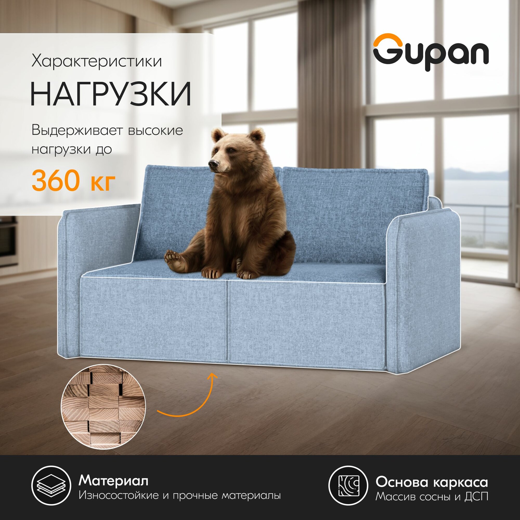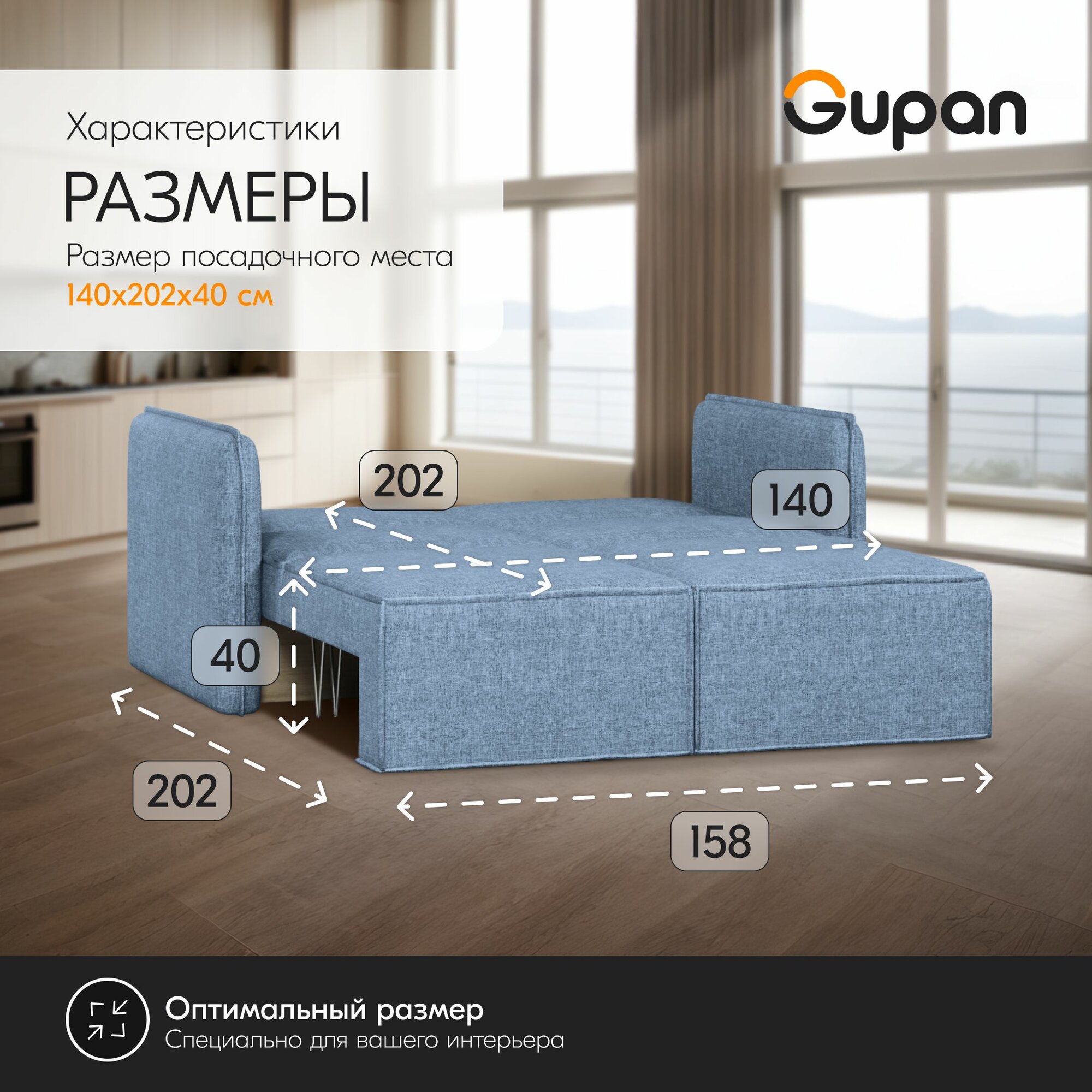 Диван кровать Gupan Кафф 1 / Смайл Рогожка Savana Lagoon, раскладной, механизм аккордеон, беспружинный, с ящиком для белья