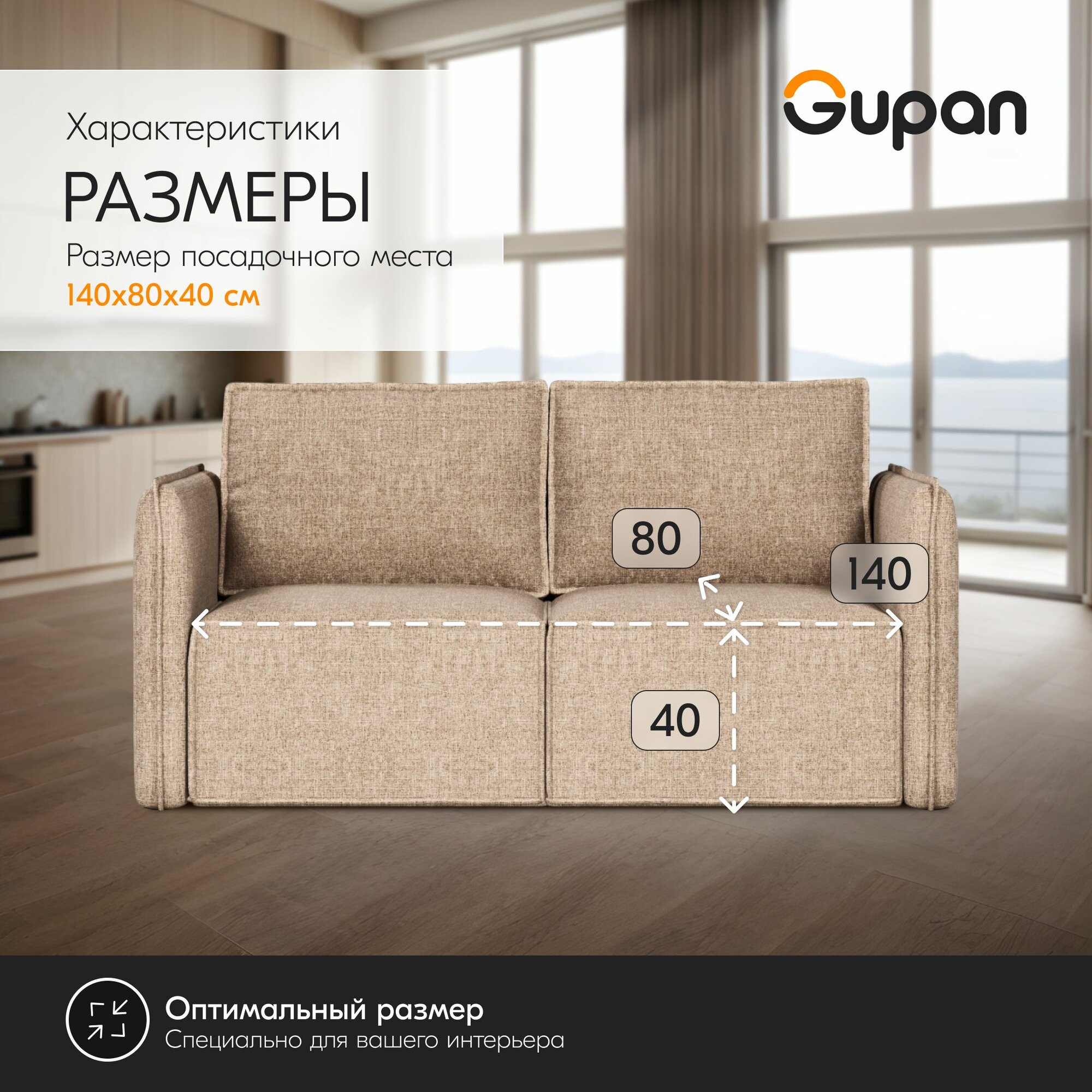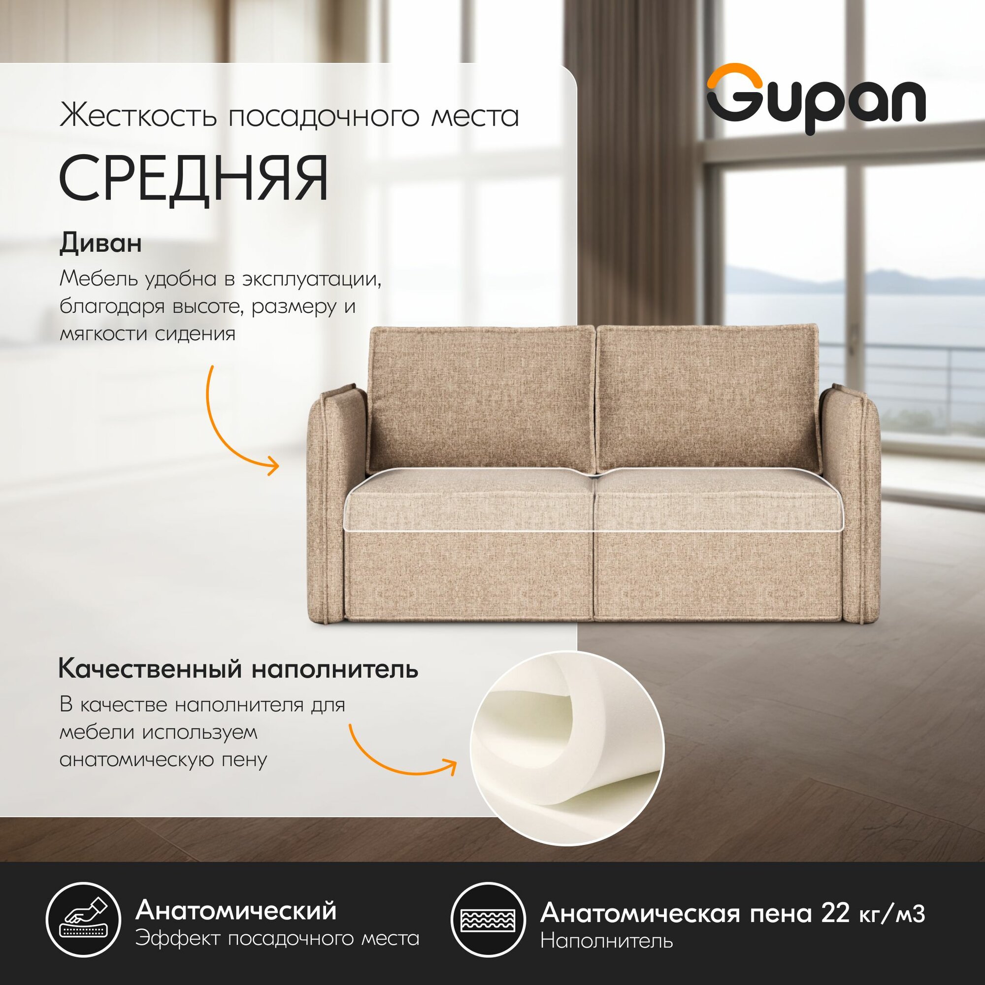 Диван кровать Gupan Кафф 1 / Смайл Рогожка Бежевая, раскладной, механизм аккордеон, беспружинный, с ящиком для белья