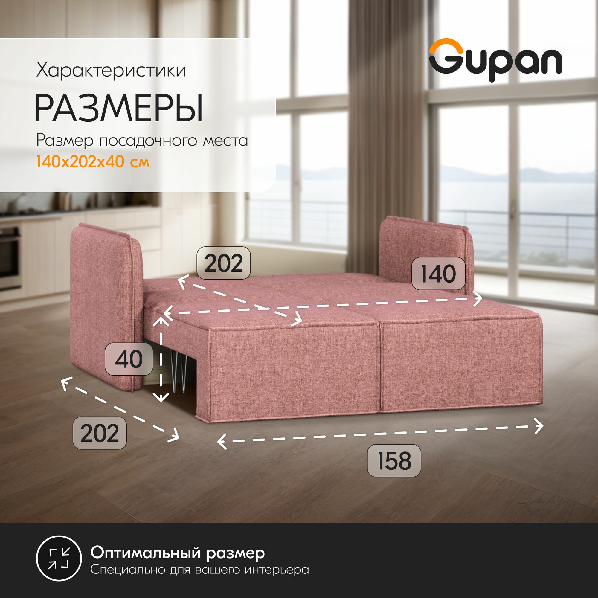 Купить Диван кровать Gupan Кафф 1 / Смайл Рогожка Savana Dimrose, раскладной, механизм аккордеон, беспружинный, с ящиком для белья