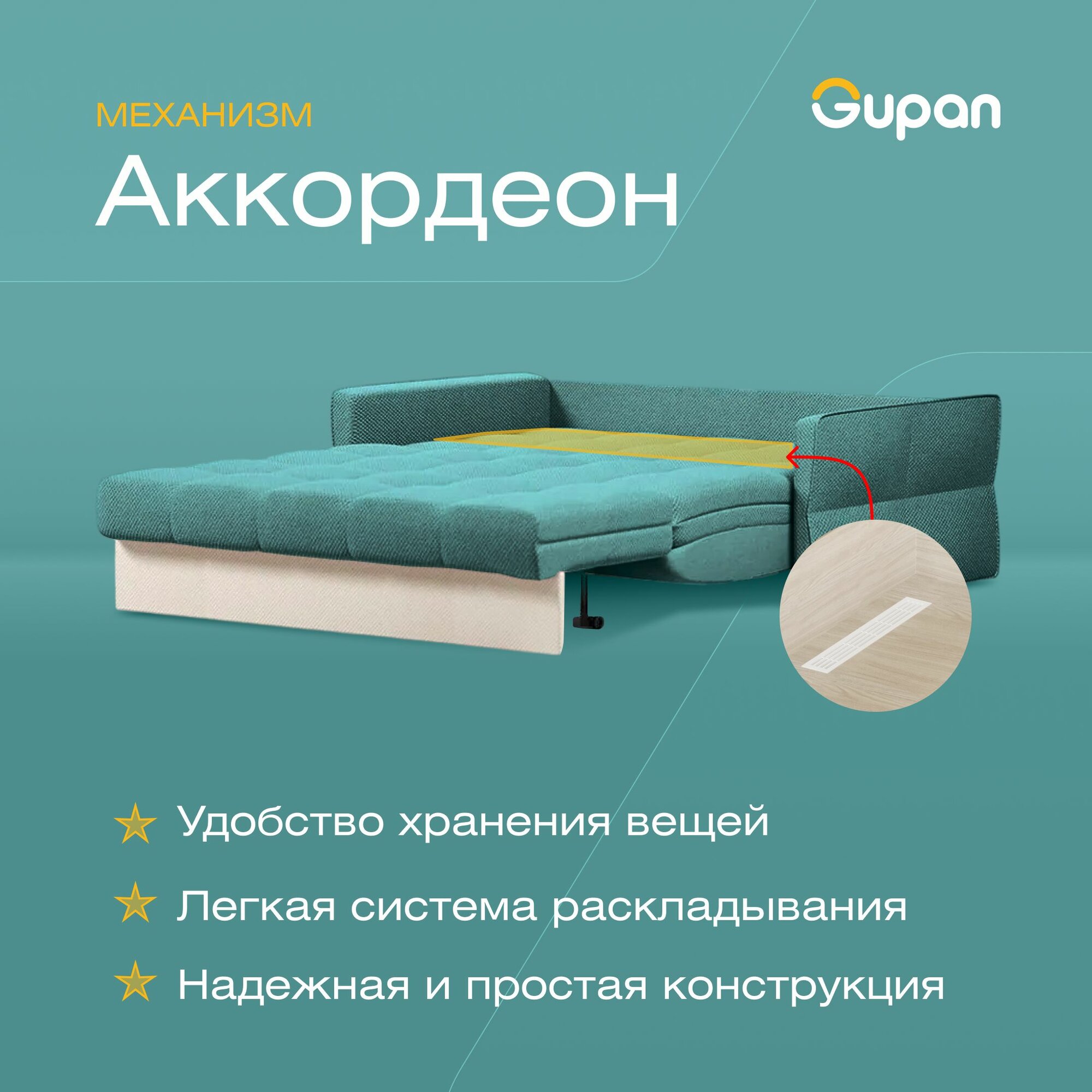 СохранитьДиван кровать Gupan Болеро Велюр Amigo Lagoon, раскладной, механизм аккордеон, беспружинный, с ящиком для белья интересное: