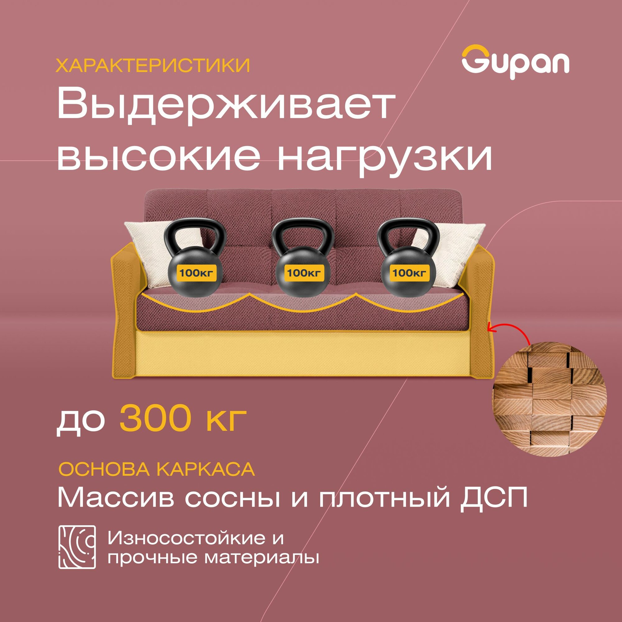 Диван кровать Gupan Болеро Велюр Amigo Berry, раскладной, механизм аккордеон, беспружинный, с ящиком для белья