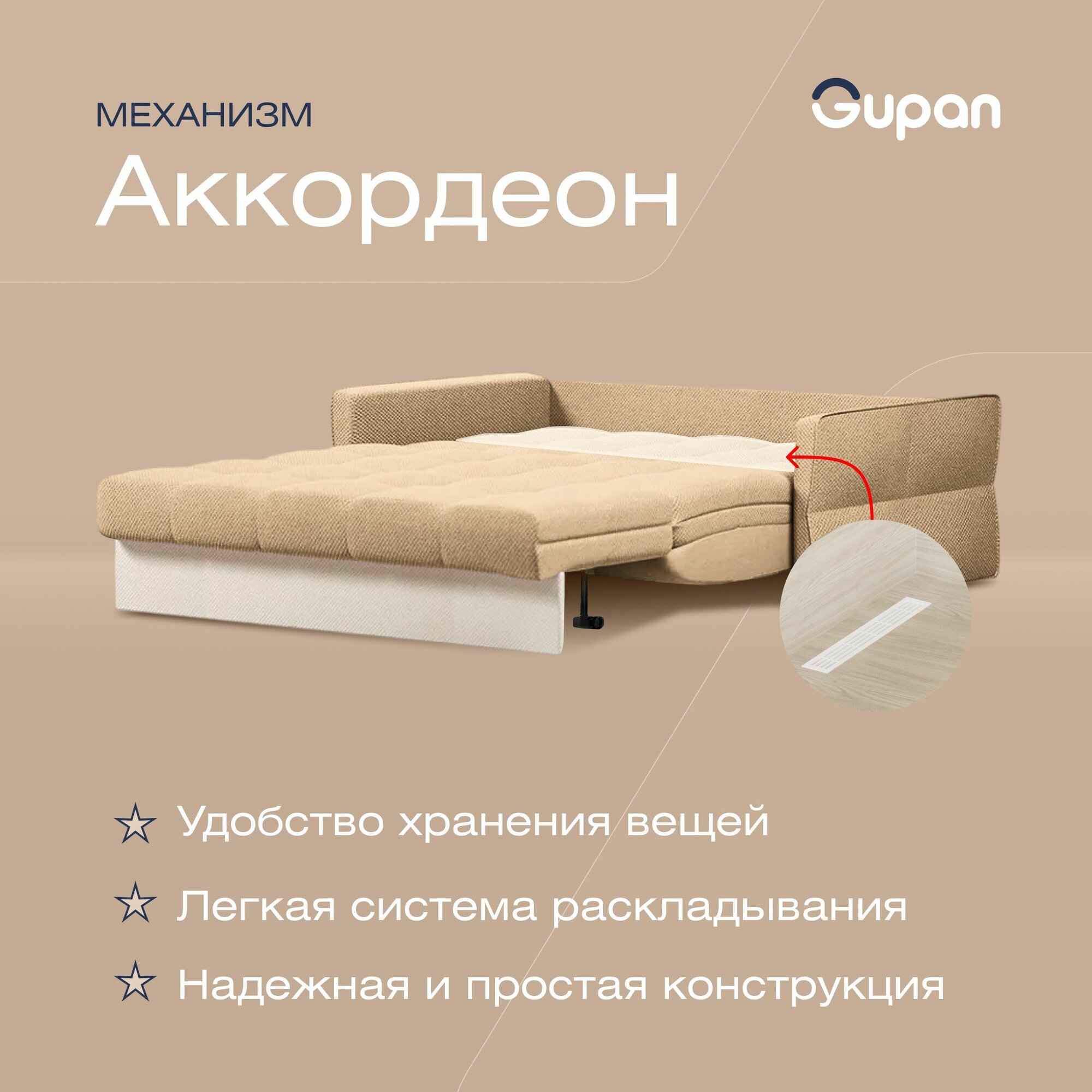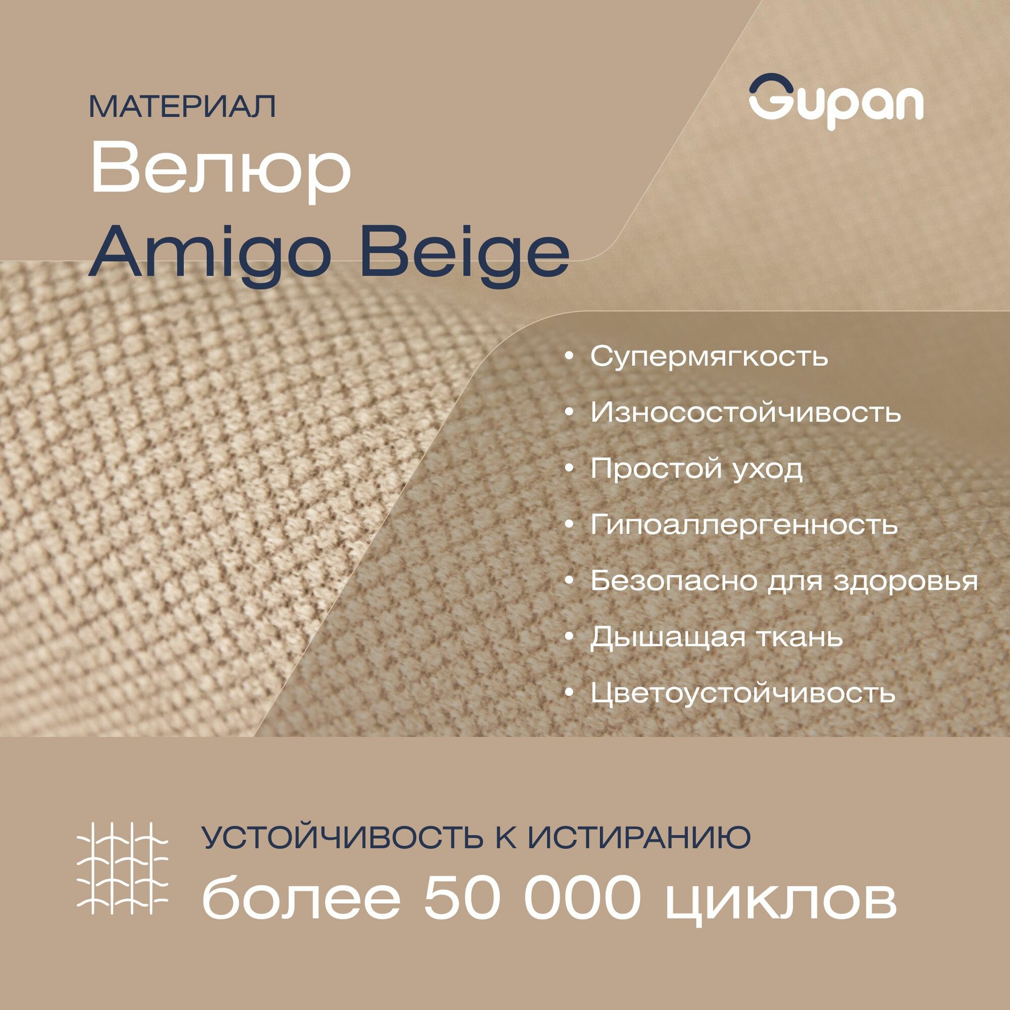 Диван кровать Gupan Болеро Велюр Amigo Latte, раскладной, механизм аккордеон, беспружинный, с ящиком для белья