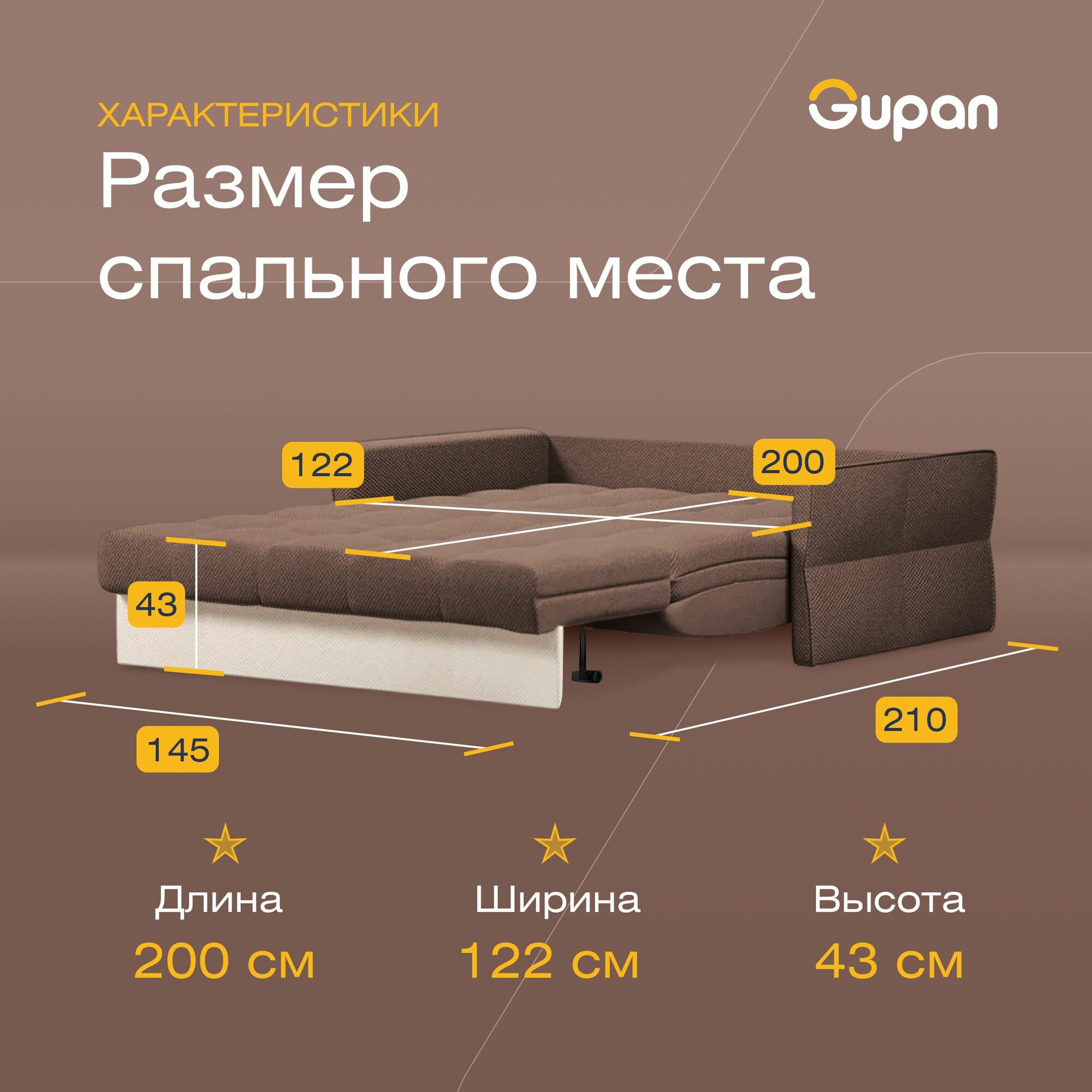 Диван кровать Gupan Болеро Велюр Amigo Cocoa, раскладной, механизм аккордеон, беспружинный, с ящиком для белья