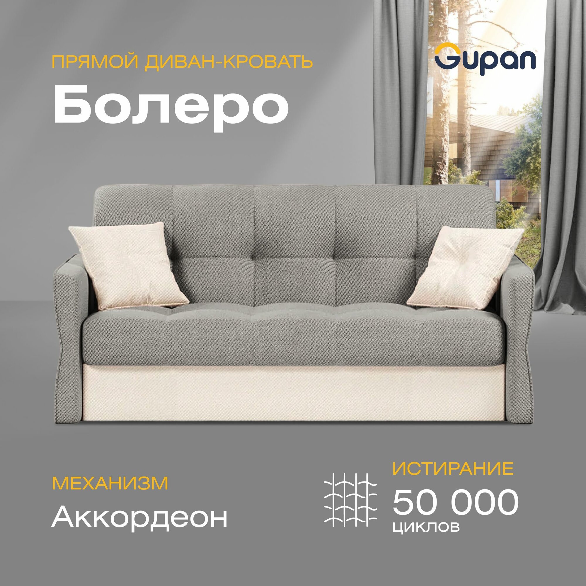 Диван кровать Gupan Болеро Велюр Amigo Cream, раскладной, механизм аккордеон, беспружинный, с ящиком для белья