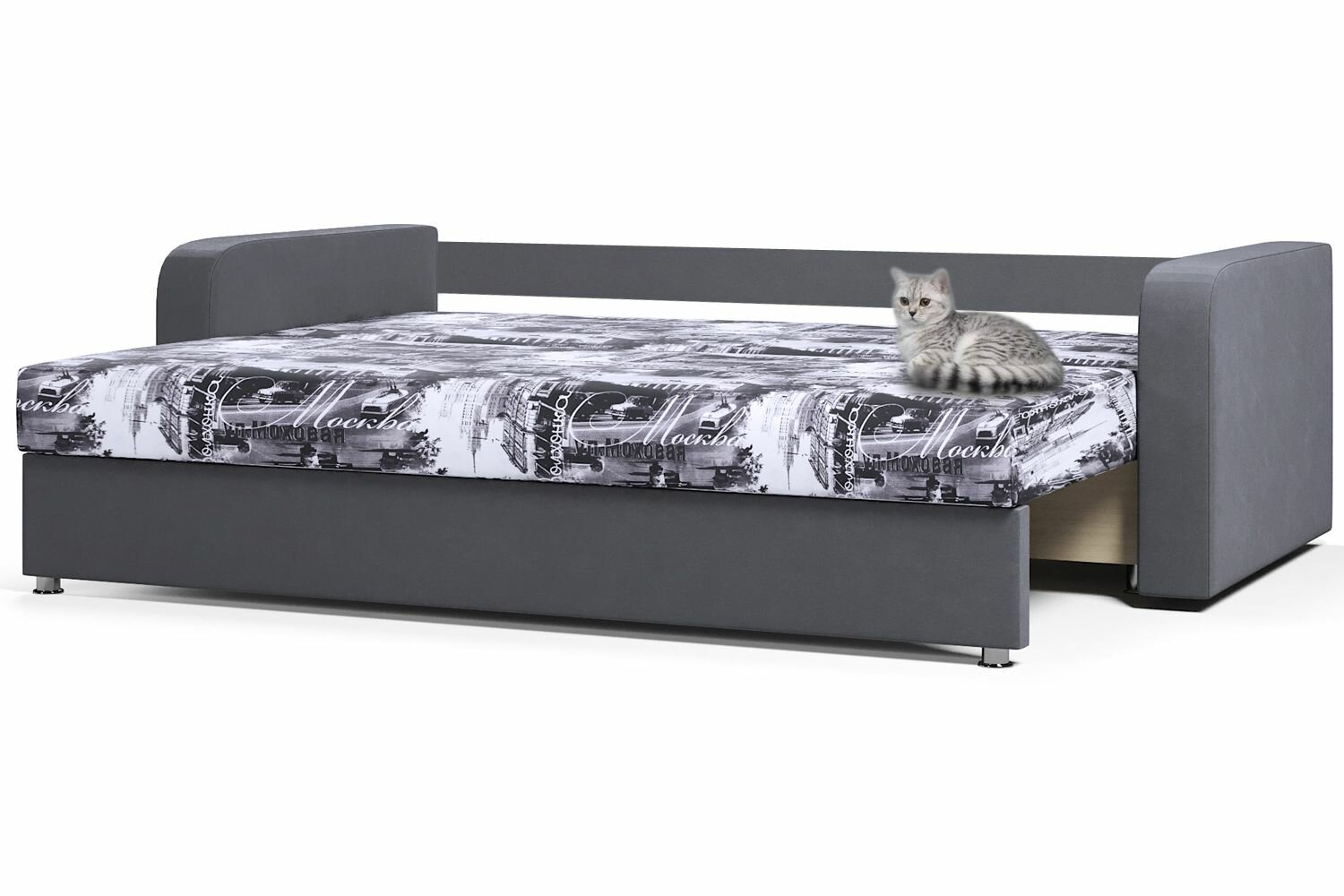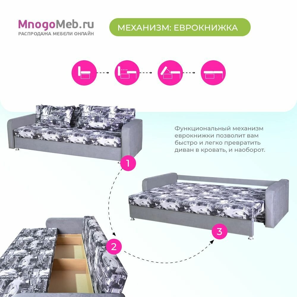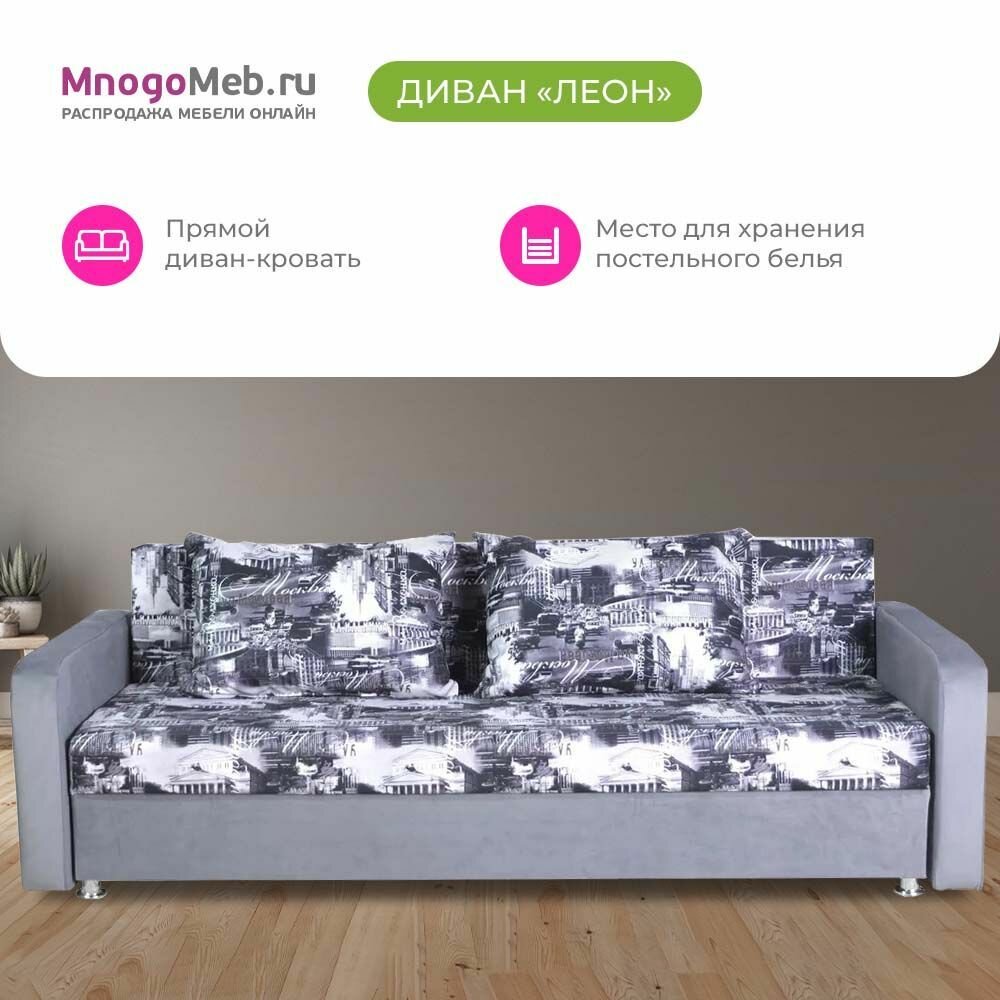 Диван раскладной прямой, 215х95х77, еврокнижка, велюр, серый принт Москва, Леон интересное: