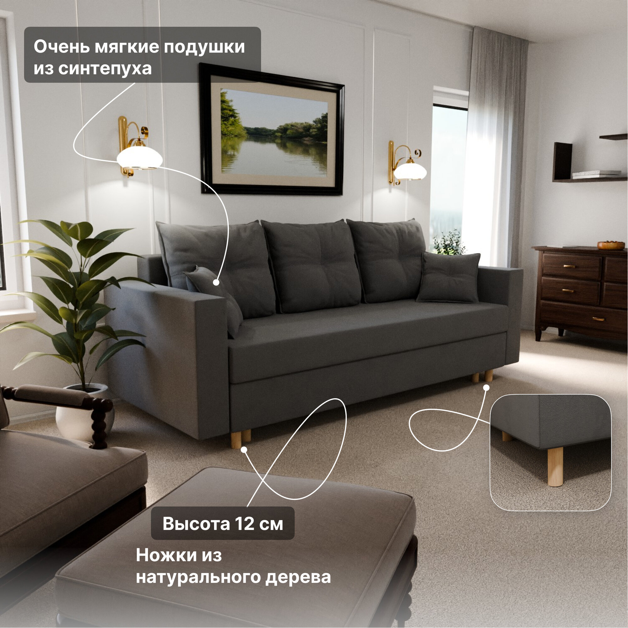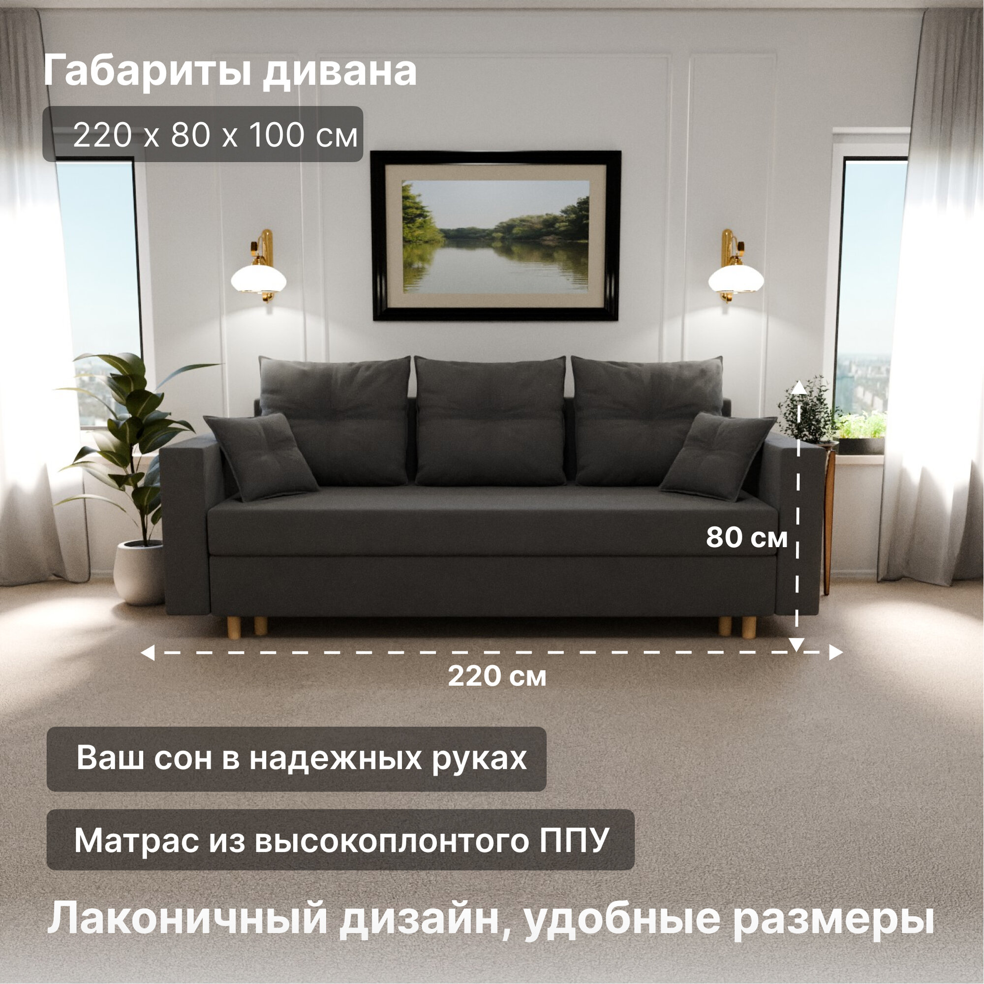 Купить Диван, диван-кровать, диван раскладной "Гармония" ППУ, Велютта люкс 32, размеры 220х80х100, серый