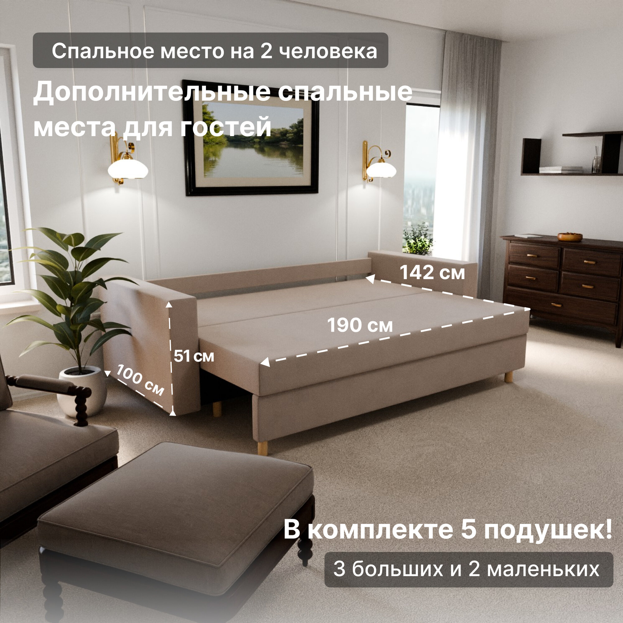 Купить Диван, диван-кровать, диван раскладной "Гармония" ППУ, Велютта люкс 07, размеры 220х80х100, бежевый