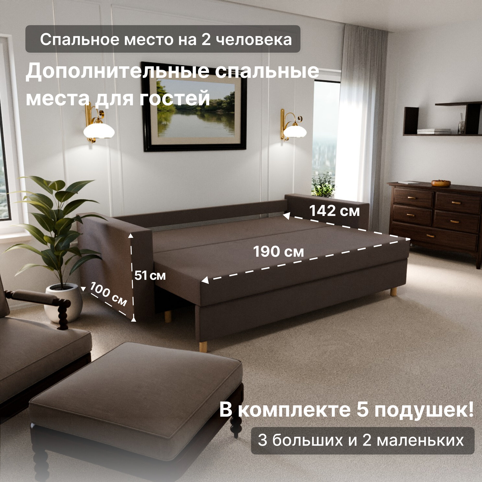 Купить Диван, диван-кровать, диван раскладной "Гармония" ППУ, Велютта люкс 23, размеры 220х80х100, коричневый