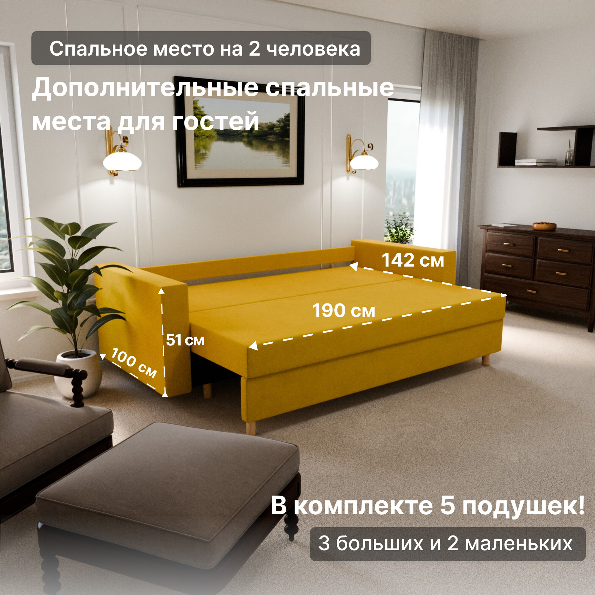 Купить Диван, диван-кровать, диван раскладной "Гармония" ППУ, Велютта люкс 40, размеры 220х80х100, желтый