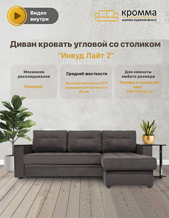 СохранитьДиван - кровать на независимом пружинном блоке Инвуд 2 угловой двухместный, Велюр темно-коричневый интересное: