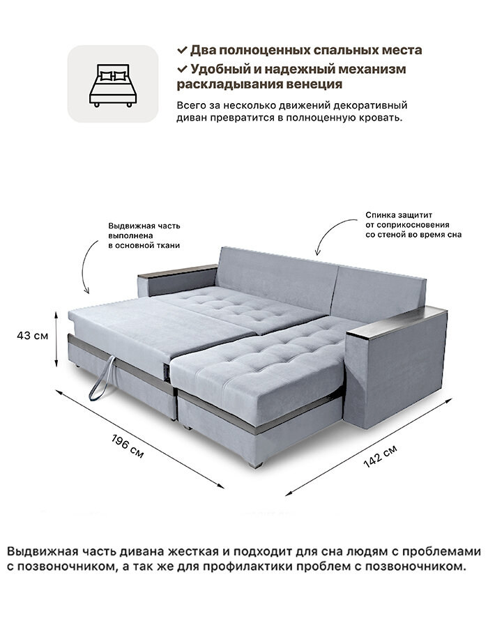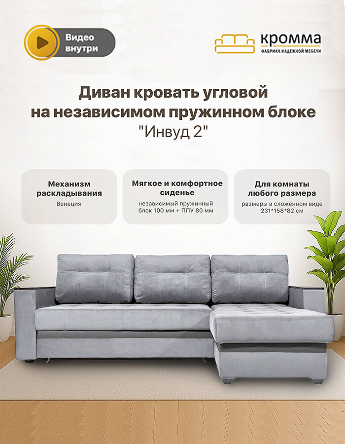 СохранитьДиван - кровать на независимом пружинном блоке Инвуд 2 угловой двухместный, Велюр, серый / Velutto 32 интересное: