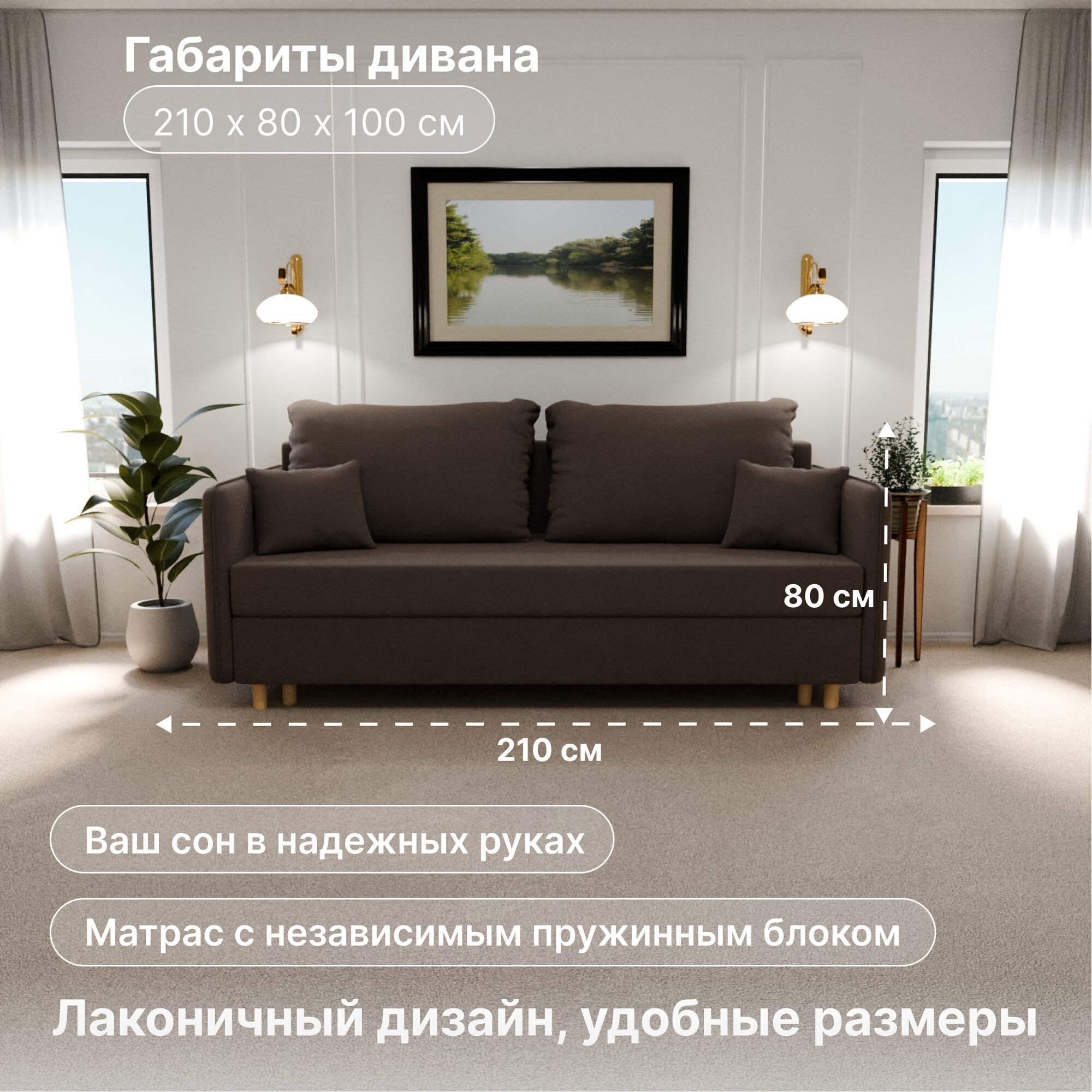 Купить Диван, диван-кровать, диван раскладной "Комфорта" ППУ, Велютта люкс 23, размеры 210х80х100, коричневый