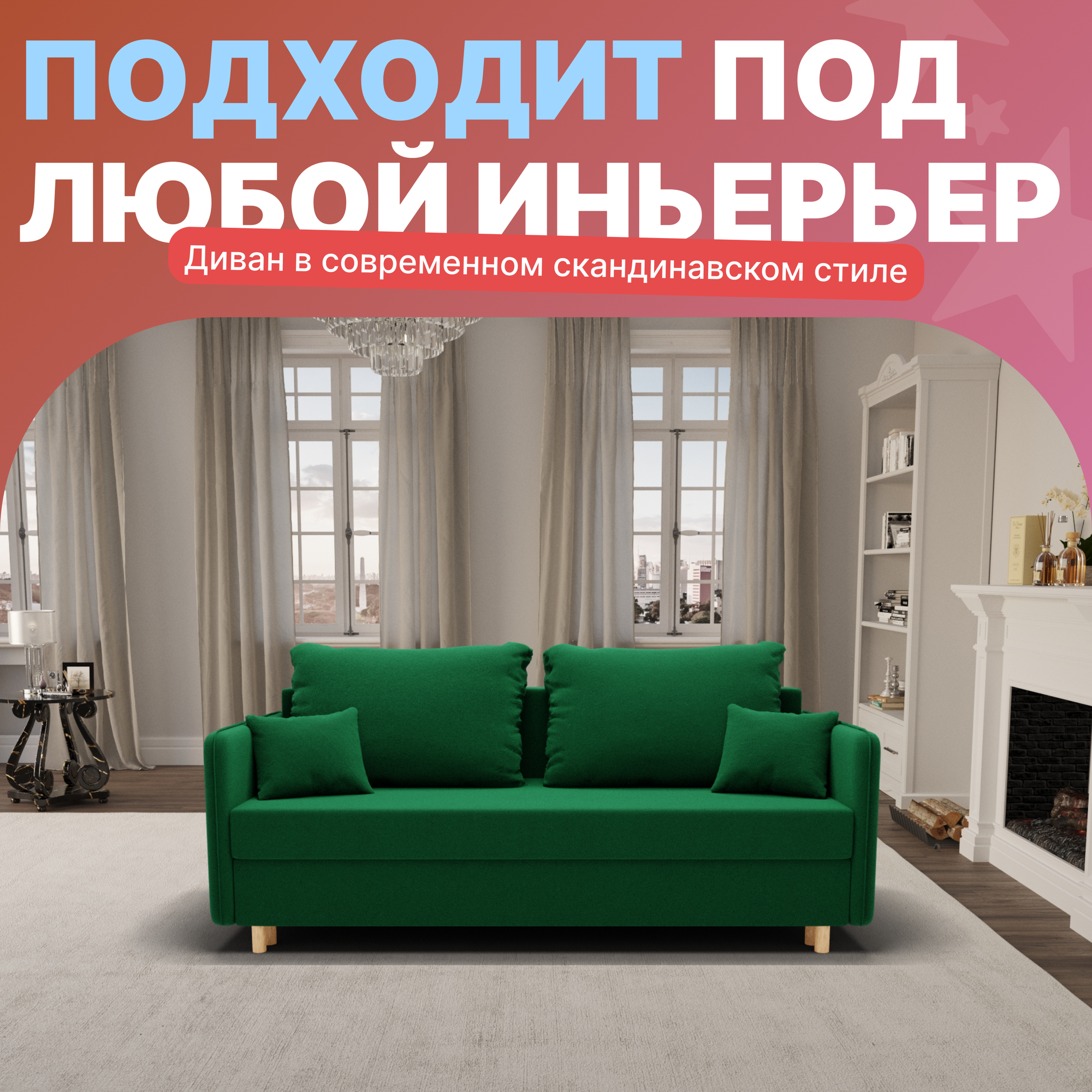 Диван, диван-кровать, диван раскладной "Комфорта" ППУ, Велютта люкс 14, размеры 210х80х100, фисташковый