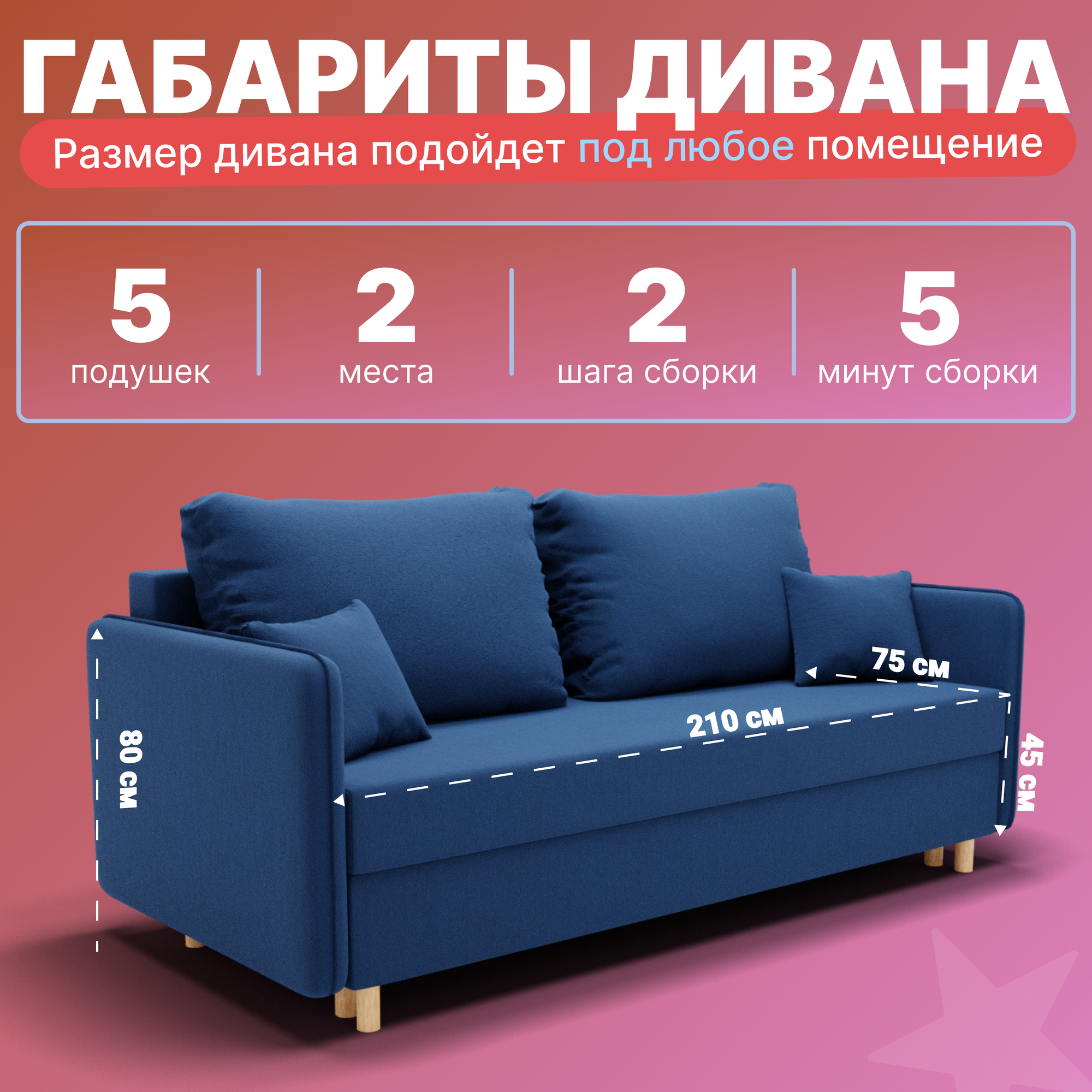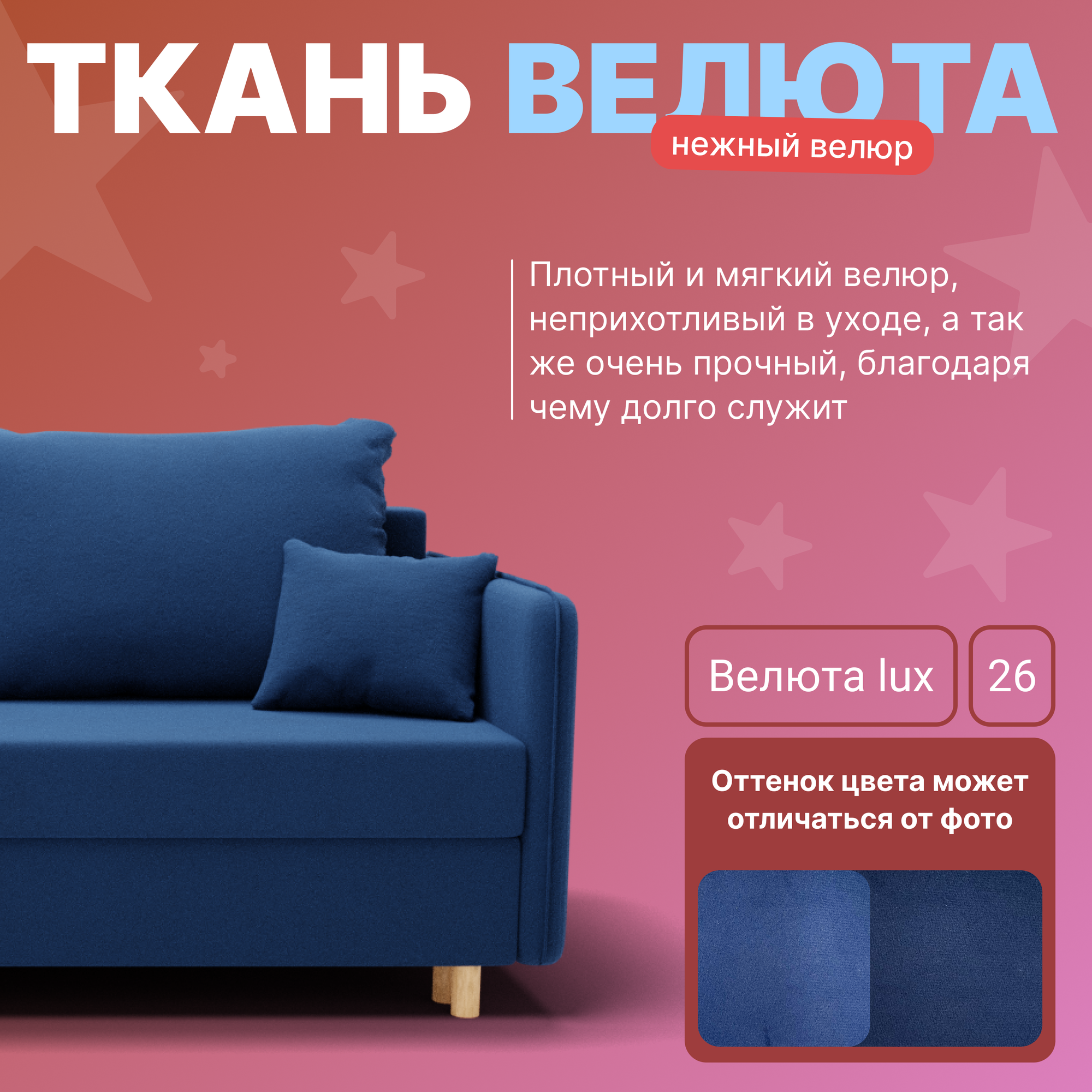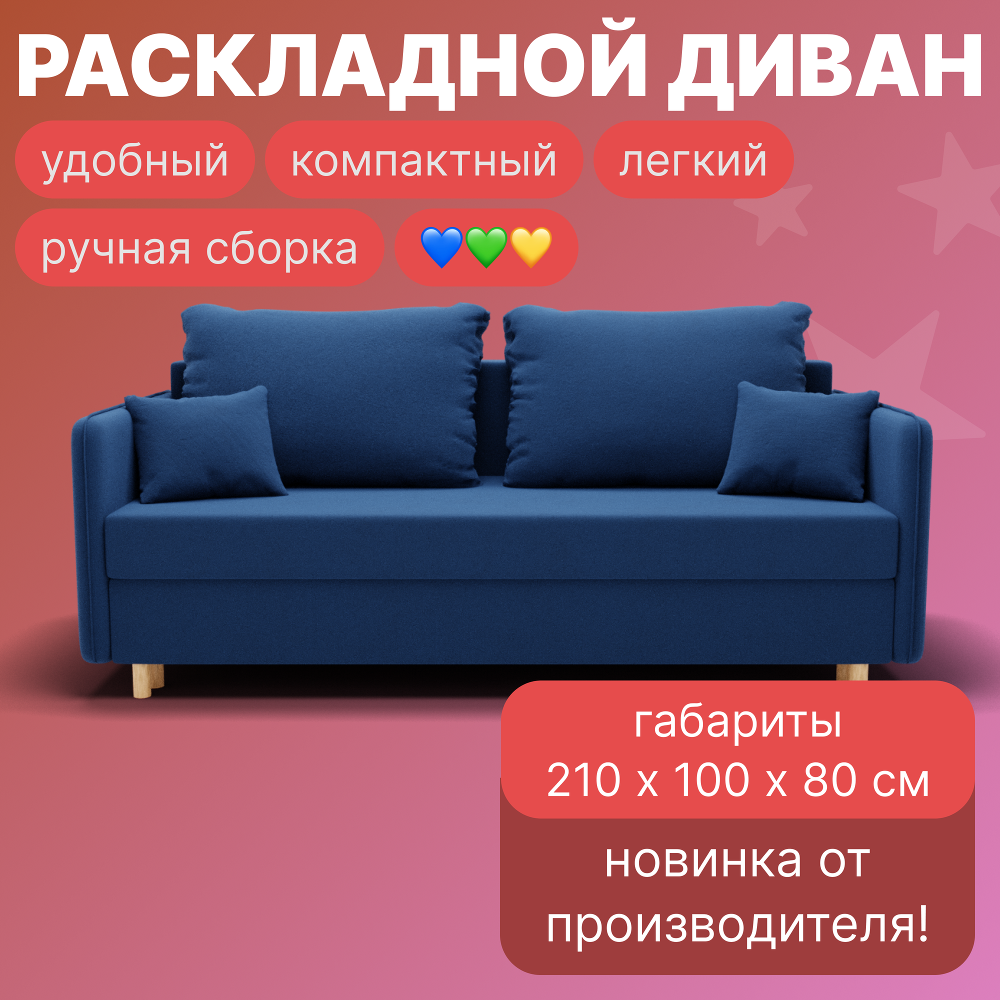 Купить Диван, диван-кровать, диван раскладной "Комфорта" ППУ, Велютта люкс 26, размеры 210х80х100, синий
