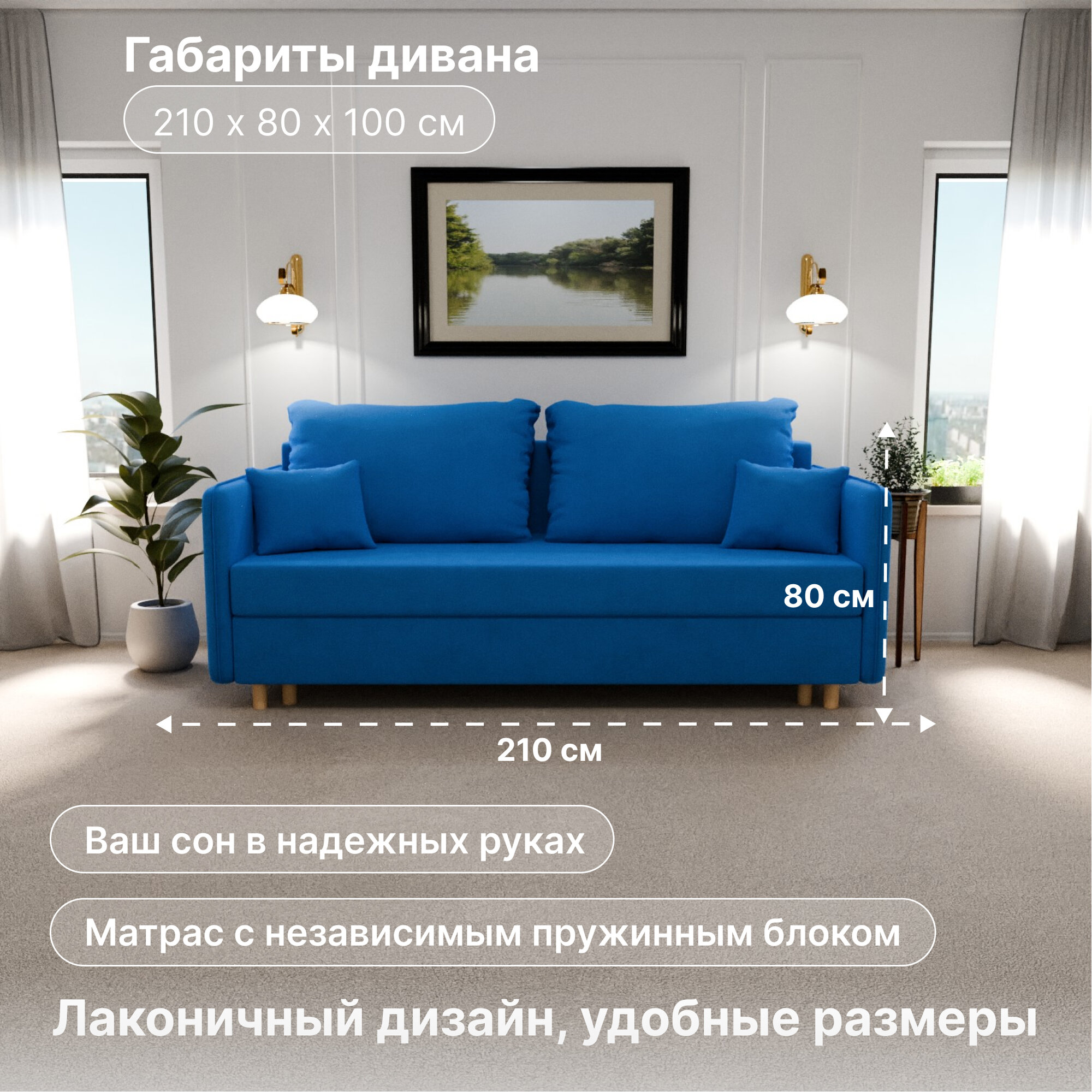 Диван, диван-кровать, диван раскладной "Комфорта" ППУ, Велютта люкс 26, размеры 210х80х100, синий