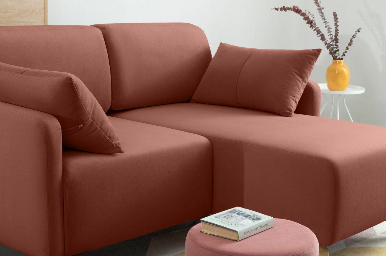 Диван угловой Льери Мини Velvet Coral раскладывающийся 163х160х85 с бельевым ящиком