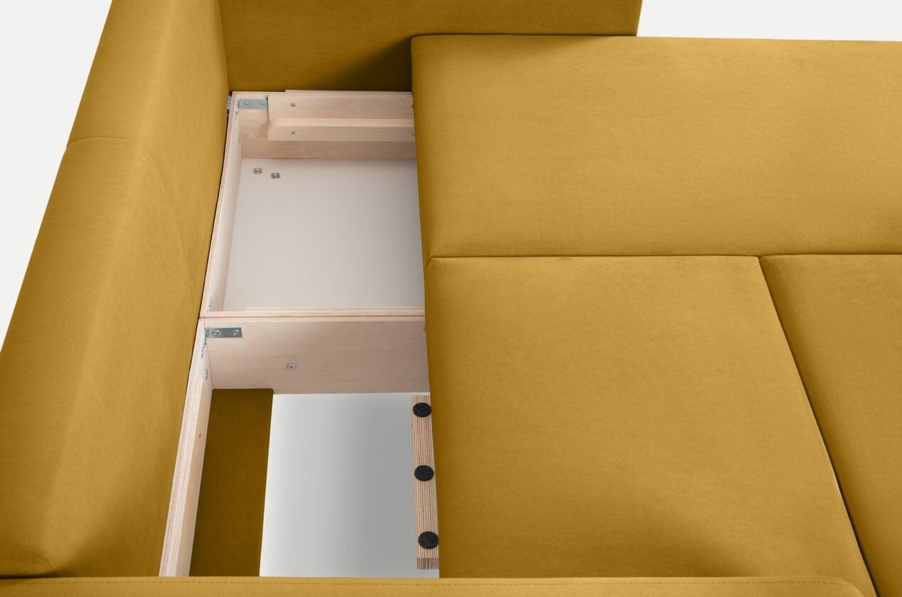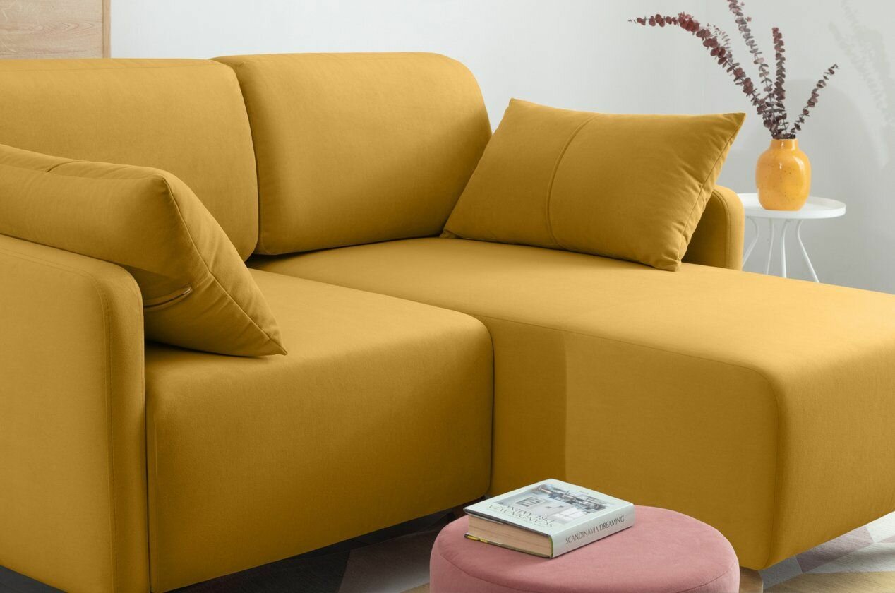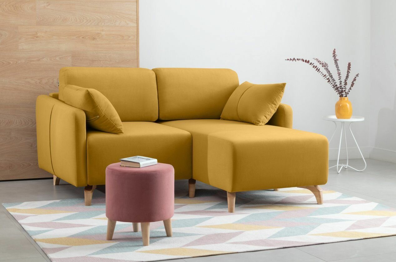 Купить Диван угловой Льери Мини Velvet Yellow раскладывающийся 163х160х85 с бельевым ящиком