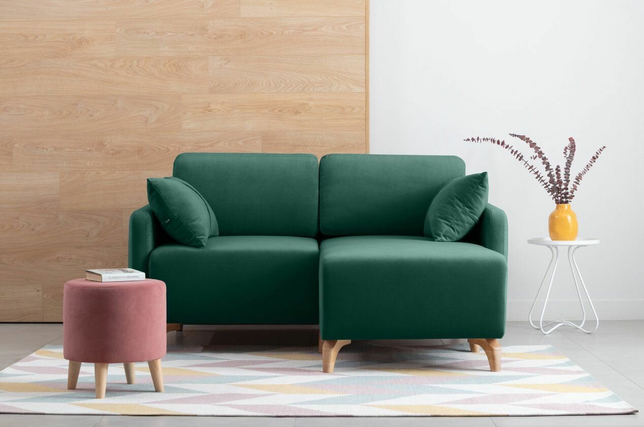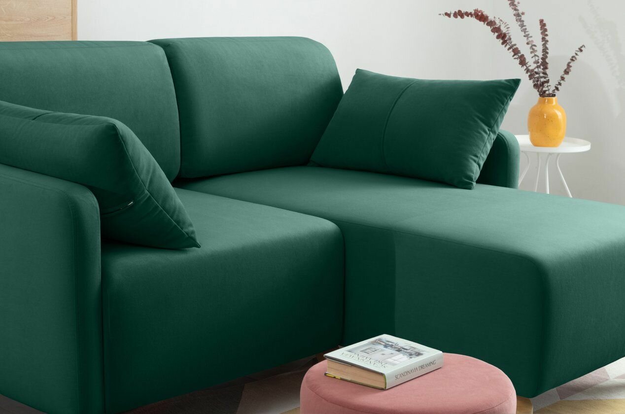 Купить Диван угловой Льери Мини Velvet Emerald раскладывающийся 163х160х85 с бельевым ящиком