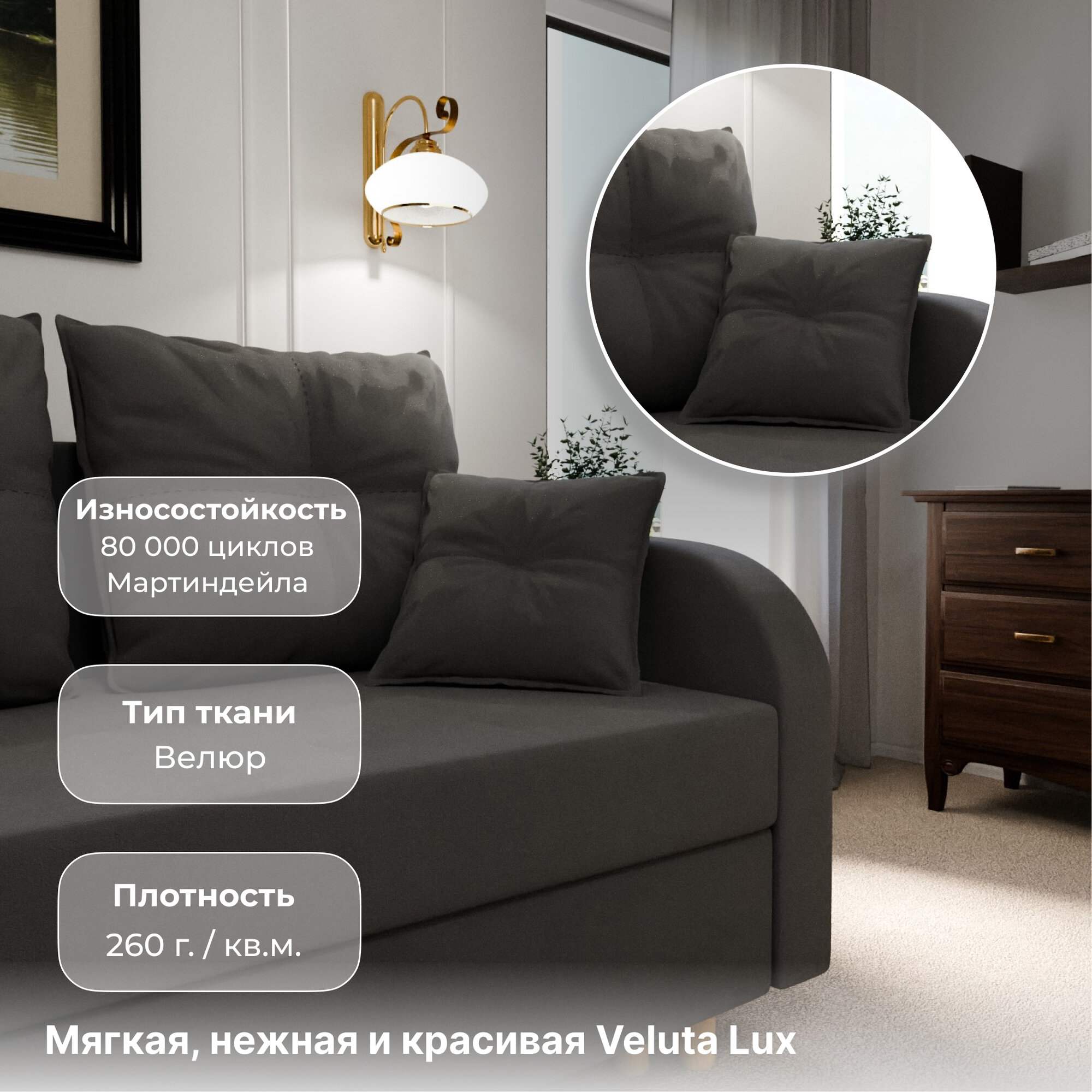 Диван, диван-кровать, диван раскладной "Генри" ППУ, Велютта люкс 50, размеры 220х80х100, светло-серый