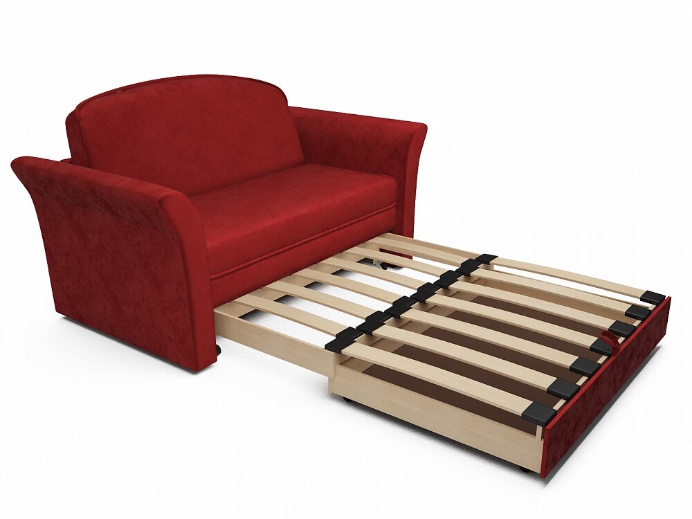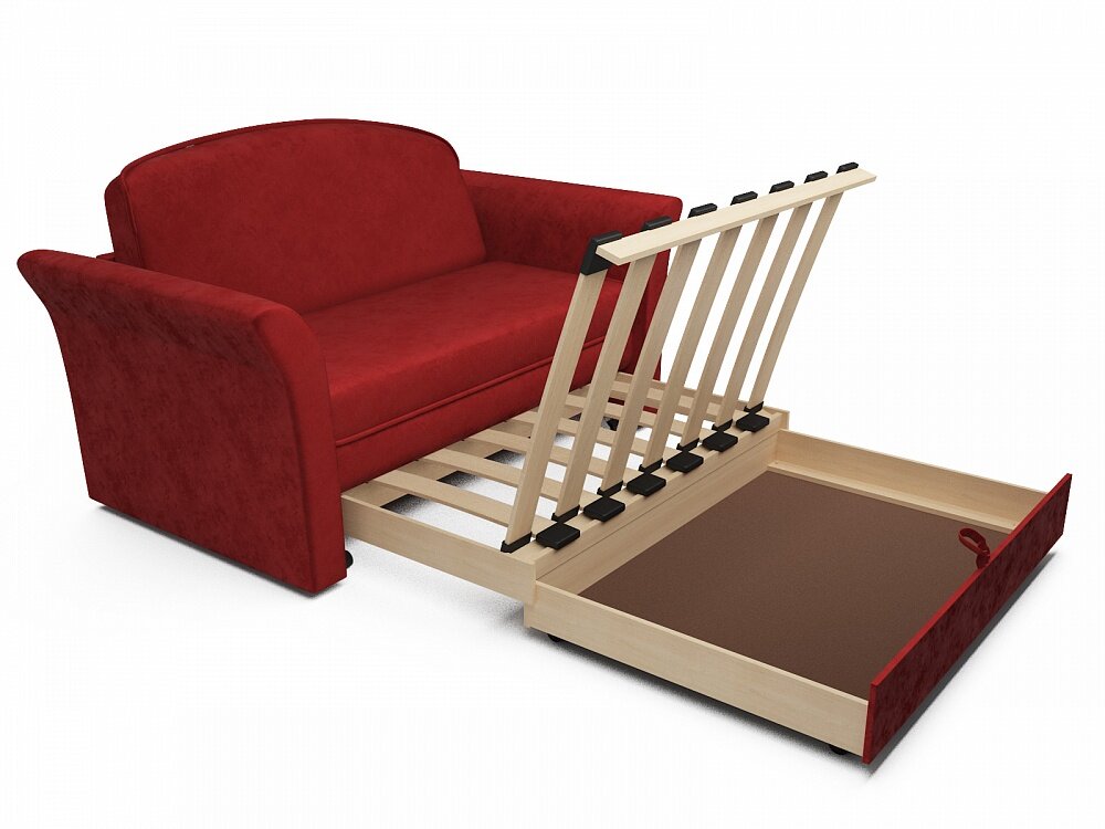 Купить Прямой диван Малютка 2 Красный Велюр, выкатной, 150х84х89 см, с ящиком для белья