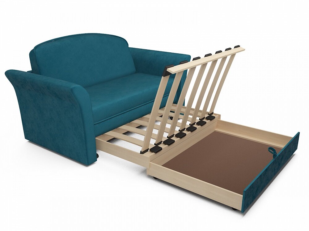 СохранитьПрямой диван Малютка 2 Синий Велюр, выкатной, 150х84х89 см, с ящиком для белья интересное: