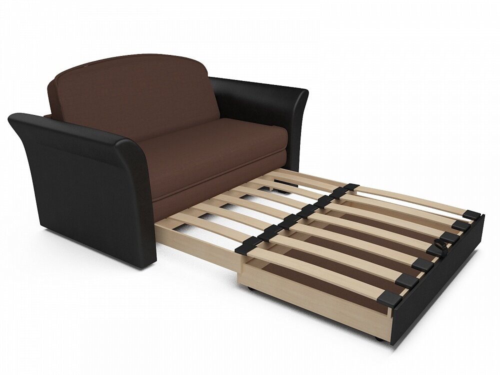 Купить Прямой диван Малютка 2 Коричнево-Черный Рогожка, выкатной, 150х84х89 см, с ящиком для белья