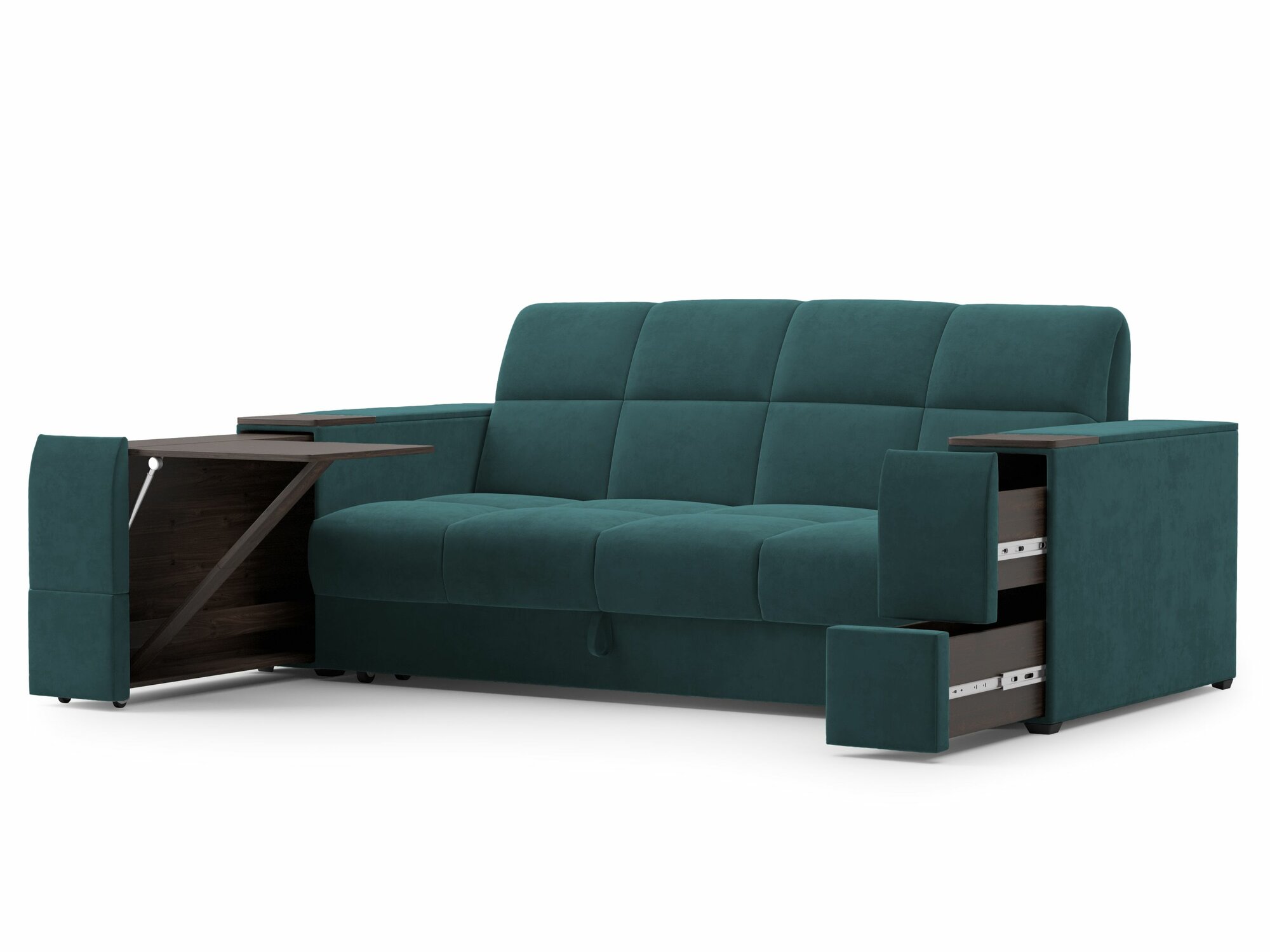 Купить Диван-кровать аккордеон, компактный спальное место 120х200, сине-зеленый / венге, матрас ППУ, габарит 175 см со столиком и ящиком для белья